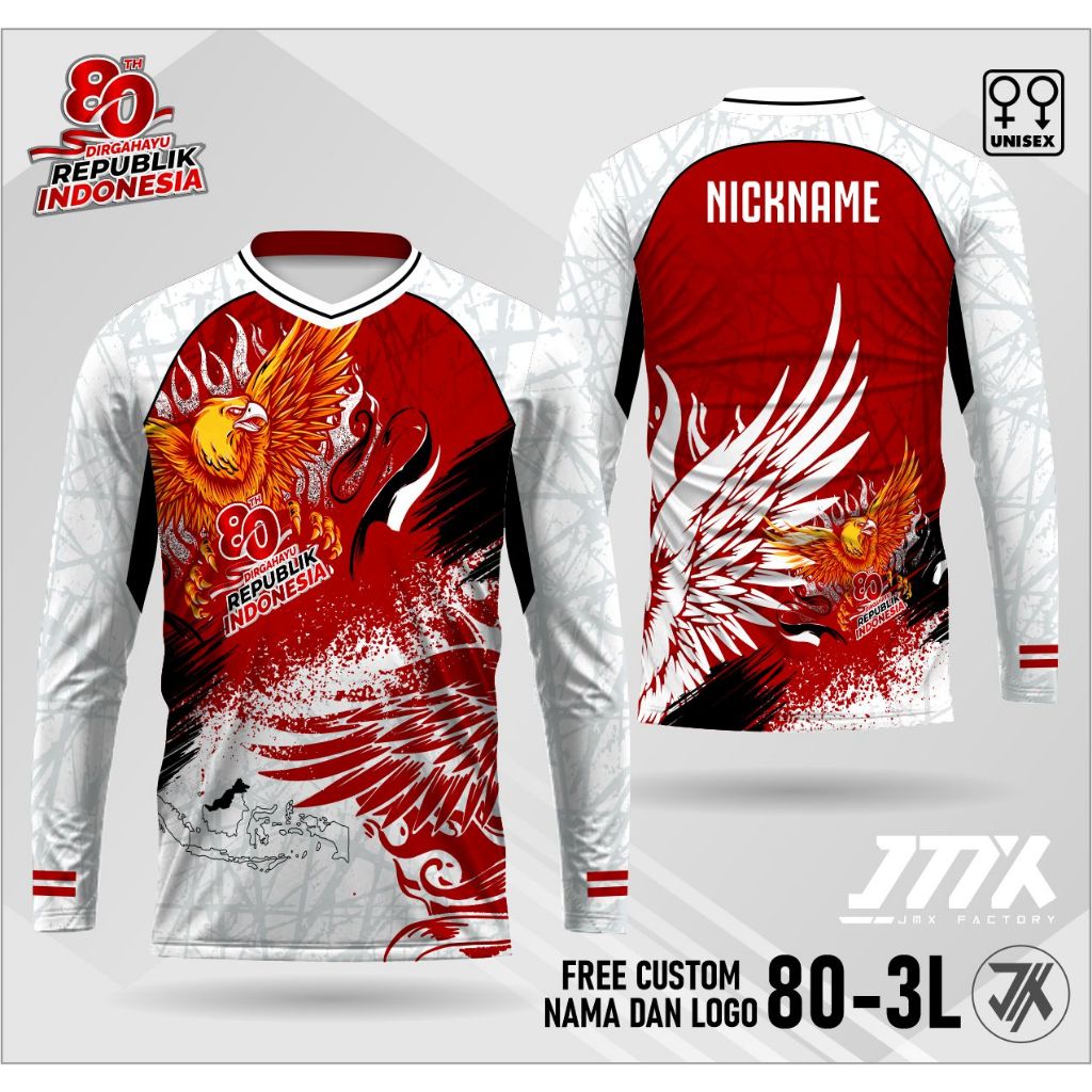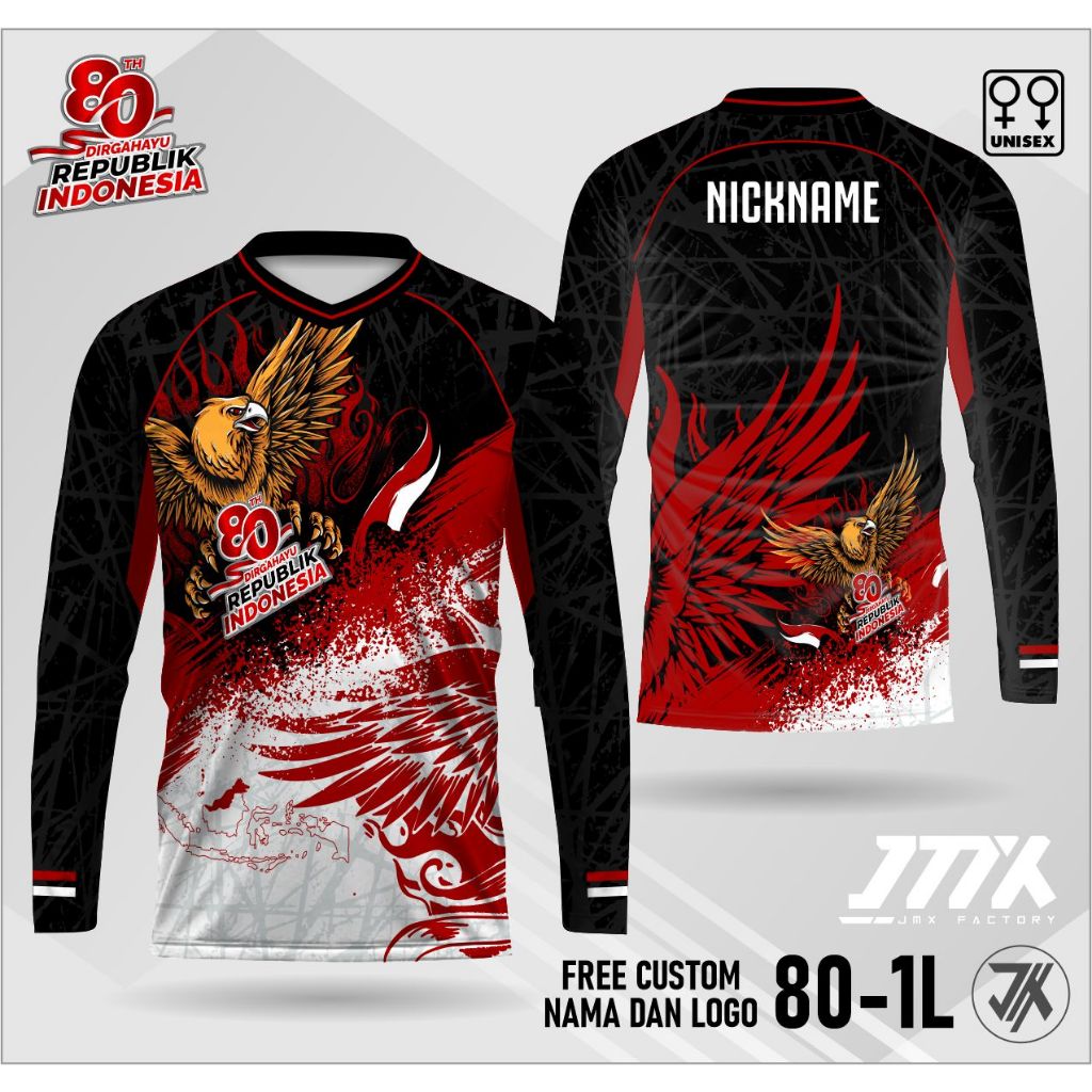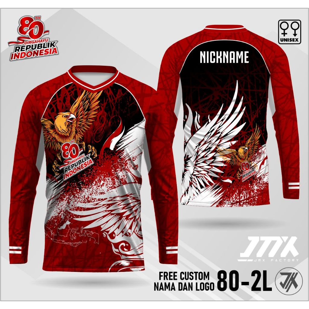 jersey hut ri 80th lengan panjang jersey kaos 17 agustus kaos kemerdekaan jersey merah putih 80-2L