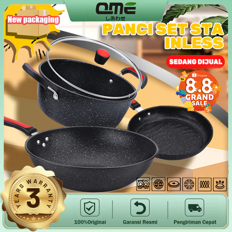 QME Antilengket Peralatan Masak 3PCS Peralatan Dapur Cocok Untuk Semua Kompor Wajan Panci Paket Keluarga Set