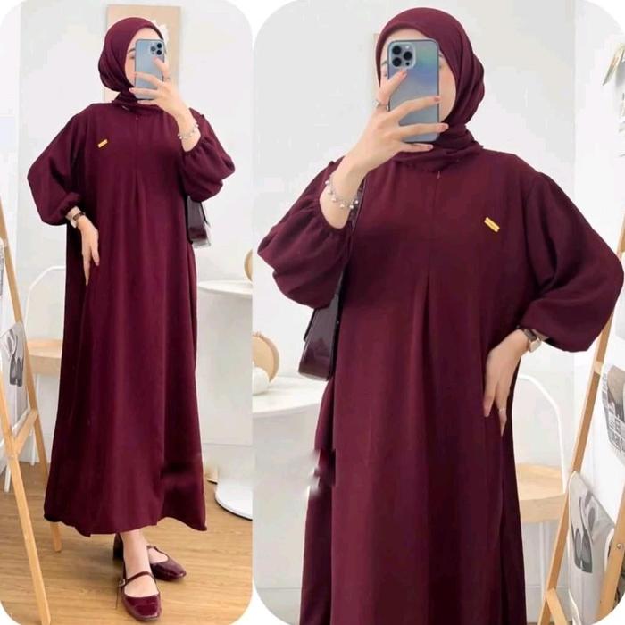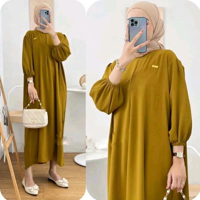 [Bundle 3 Pcs] Amanda Midi Dress Crinkle Airflow Premium Ootd Gamis Jumbo - Amd Pilih Warna Di Catatan, Ld 115-120Cm