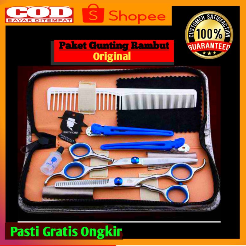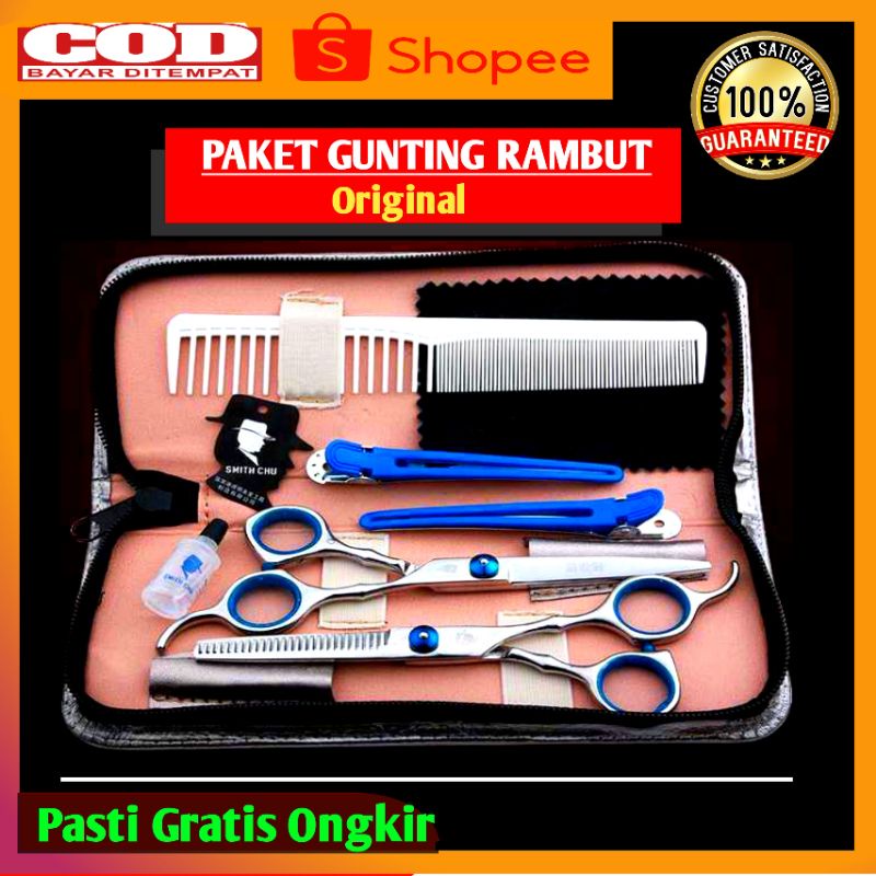 GUNTING RAMBUT SATU SET PROFESIONAL FULL STAINLESS MODEL SASAK DAN LURUS SUPER T4J4M ZIG ZAG PAKET LENGKAP SALON BARBERSHOP