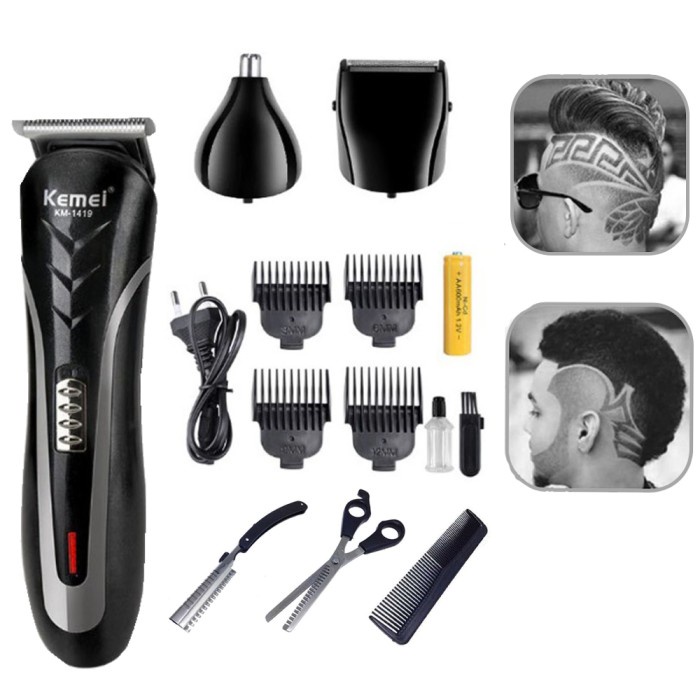 PAKET LENGKAP ALAT CUKUR RAMBUT ELEKTRIK /HAIR CLIPPER 3IN1 KEMEI KM 1419 ALAT PENCUKUR KUMIS JENGGOT