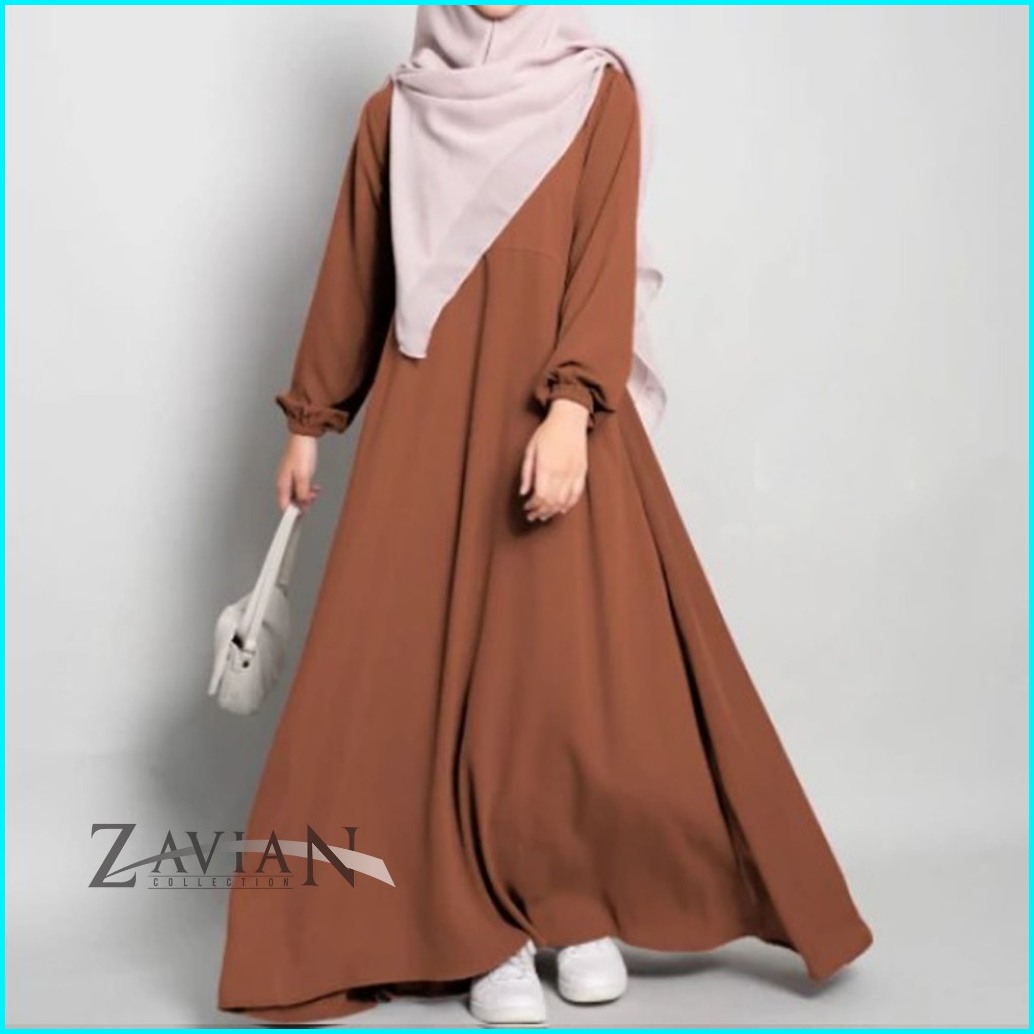 Zavian Basic Abaya Polos Lengan Karet Wolpis Premium Dress Gamis Wanita Kekinian Ukuran S M L Xl Xxl