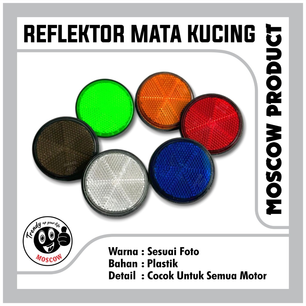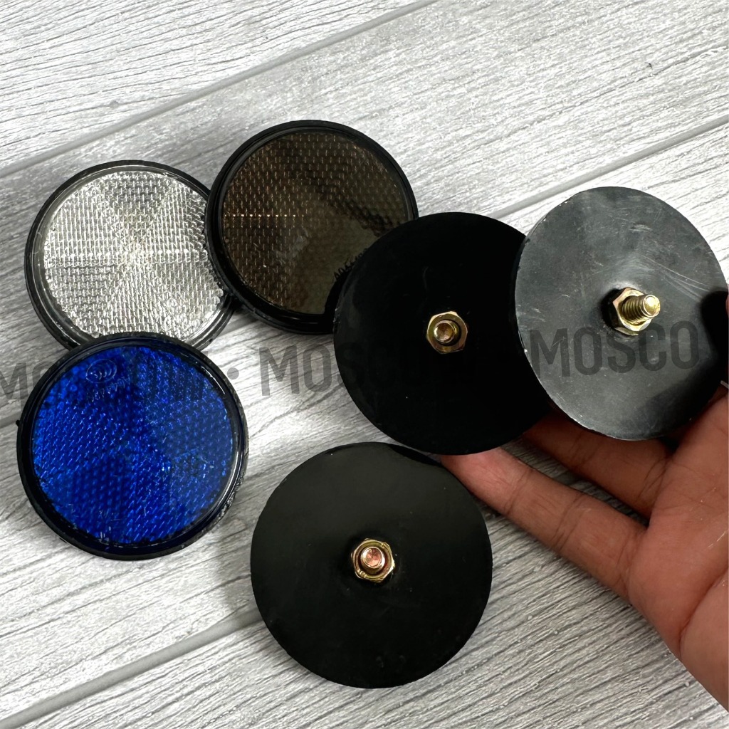 MOSCOW MATA KUCING REFLECTOR BULAT MOTOR MOBIL SEPEDAH PENANDA LAMPU REFLECTOR PEMANTUL CAHAYA SAAT MALAM MATA KUCING BULAT PLASTIC WARNING SATUAN 1PCS 6 WARNA SUDAH ADA BAUT DIBAGIAN BELAKANG