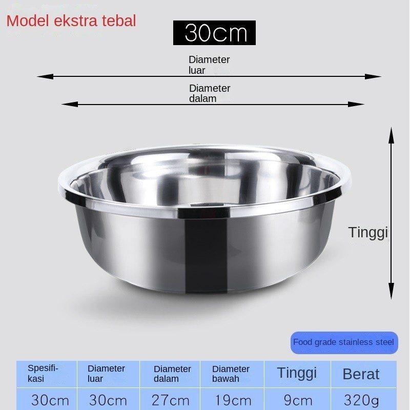 Cookhaus Baskom Stainless Steel Bulat Anti Karat Tebal Wadah Cuci Makanan Serbaa 578