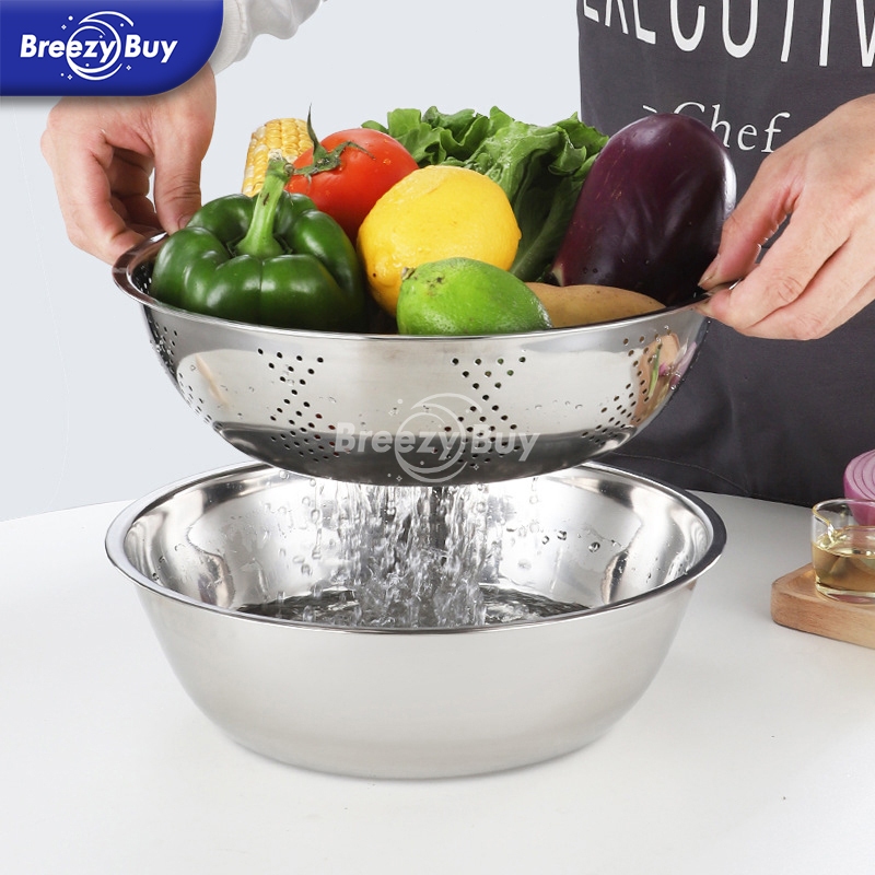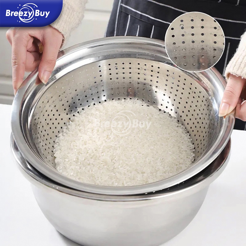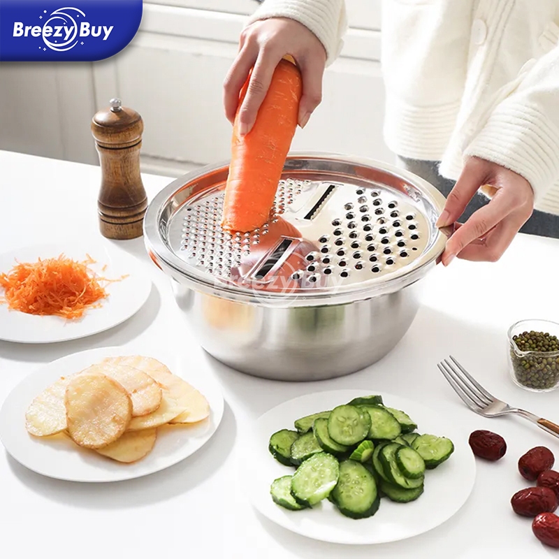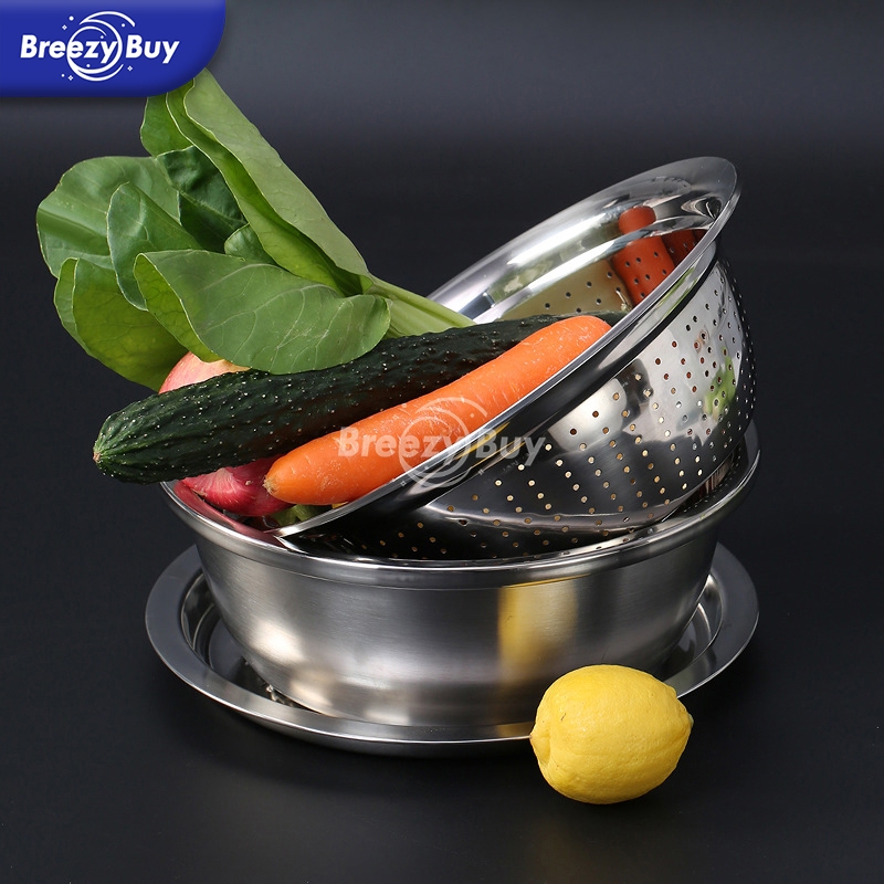 【】Baskom 3in1 Stainless Steel/ Baskom Parut Serbaa / Pengiris Sayuran Buah / Baskom Parut 26CM