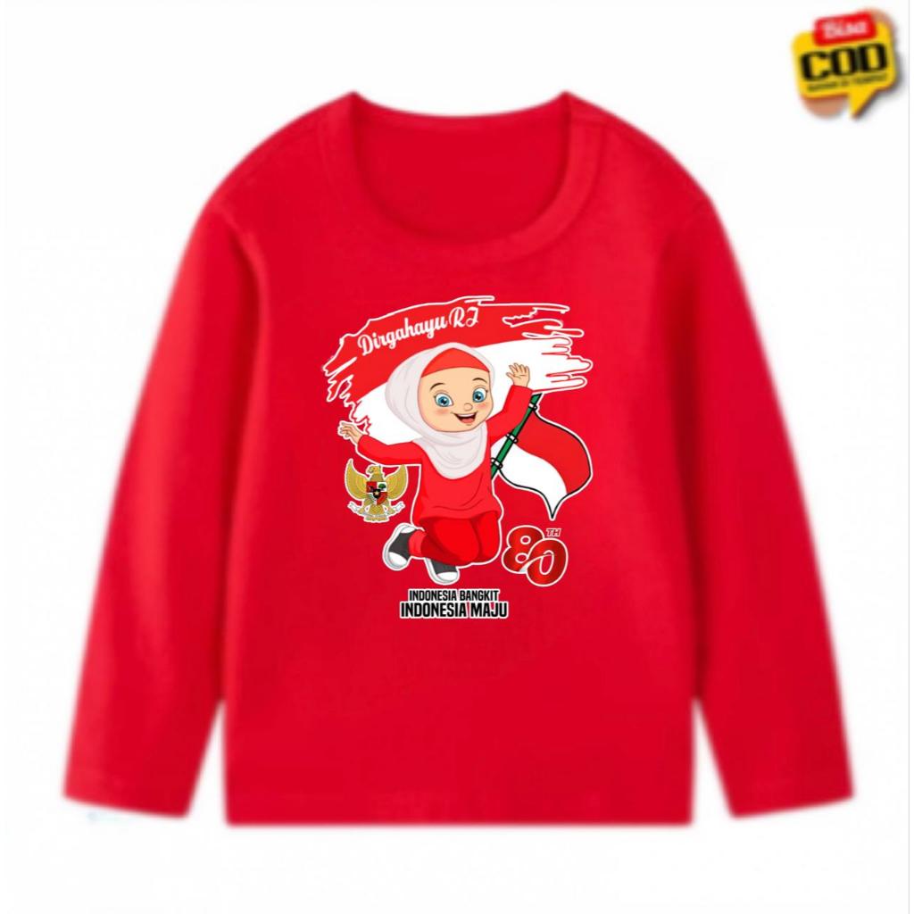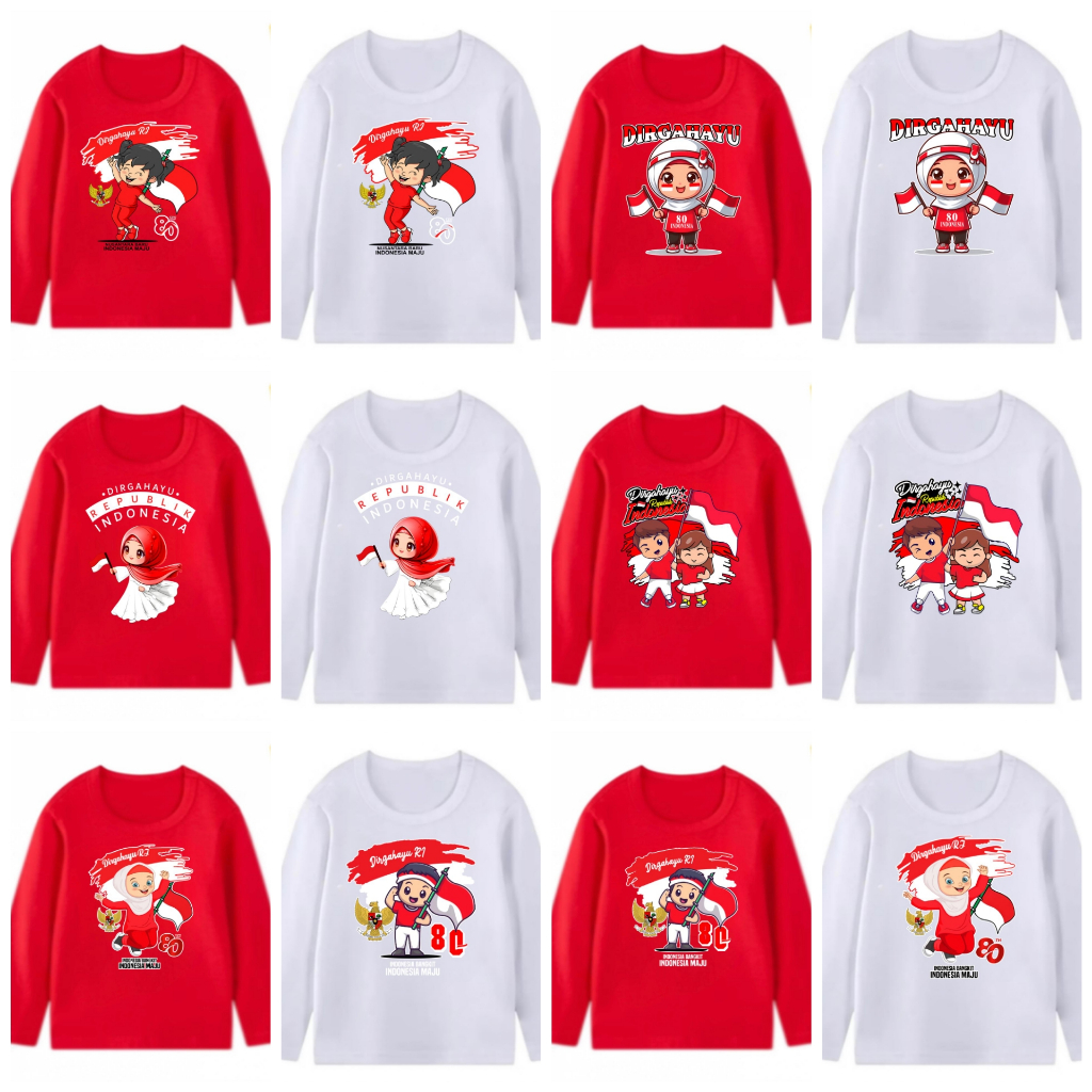 Dirgahayu Kaos Anak Unisex 80 Indonesia/Atasan Lengan Panjang 17 Agustus 3-14 Tahun