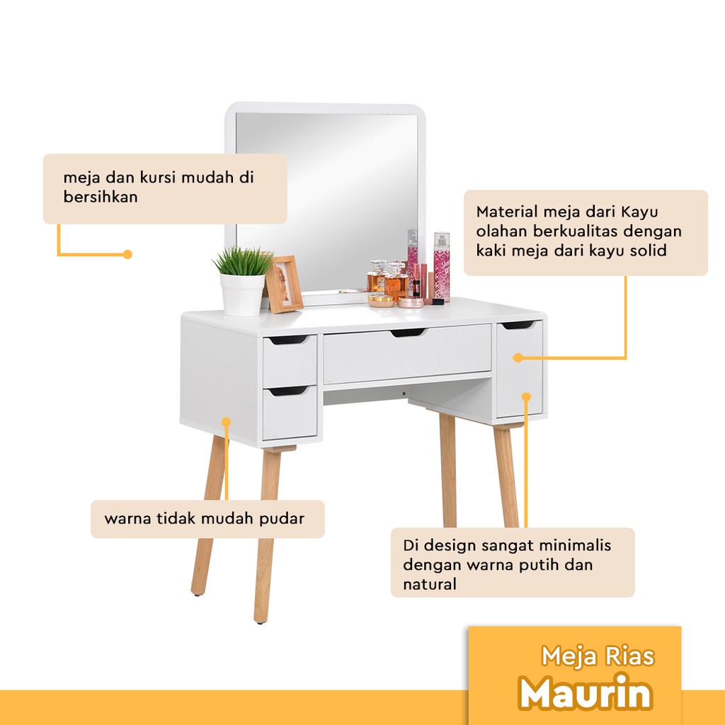 Meja Rias Minimalis kayu Solid Cantik / Meja Rias Makeup Best Seller / Meja Rias Aesthetic