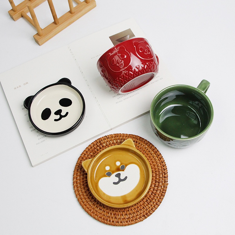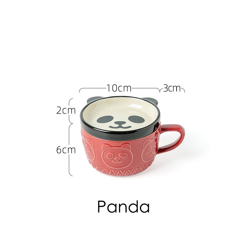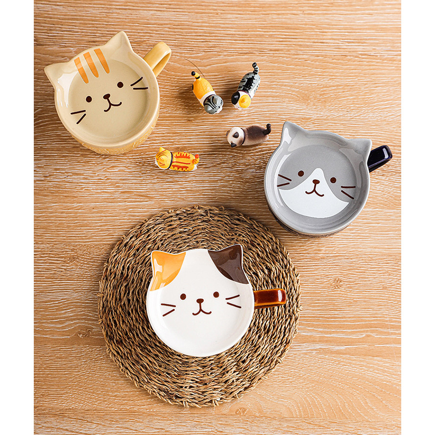 Mug 5 Warna Ceramic Mug Lucu Sarapan Dengan Tutup Keramik Mug Cartoon Kucing Dipotong Mug Set Kreatif Kopi Hadiah