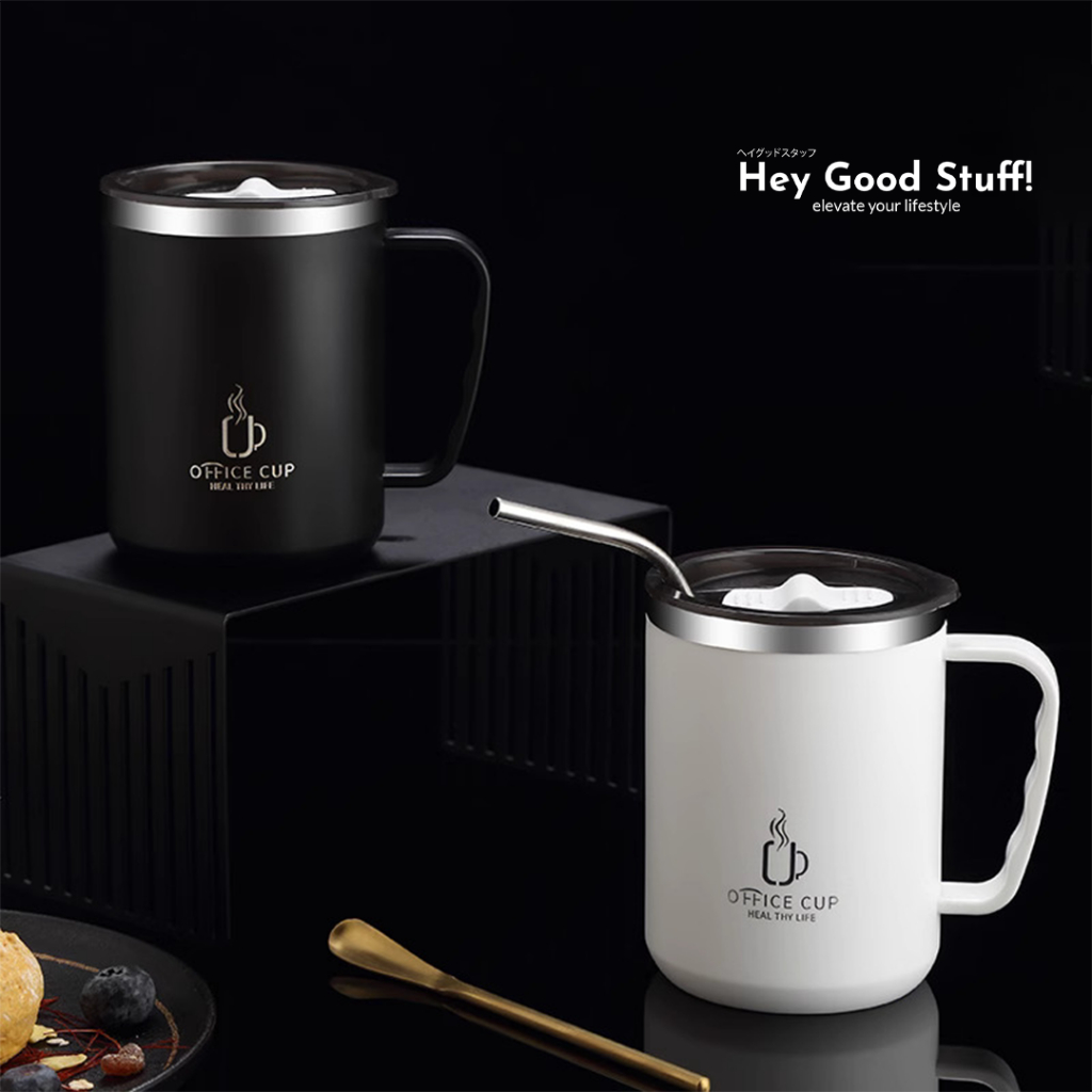 MUG GELAS KOPI ATAU TEH AESTHETIC STAINLESS STEEL 304 ANTI TUMPAH 500ML