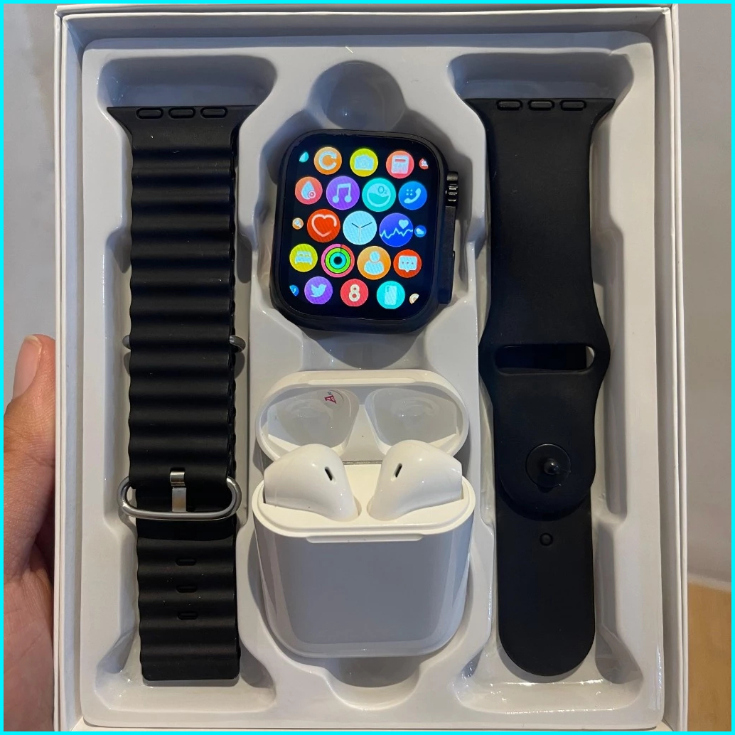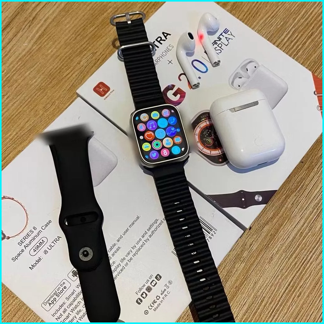 Jam Tangan Wanita Pria Smartwatch Ultra Watch Free 2 Tali Plus Earphone Tws
