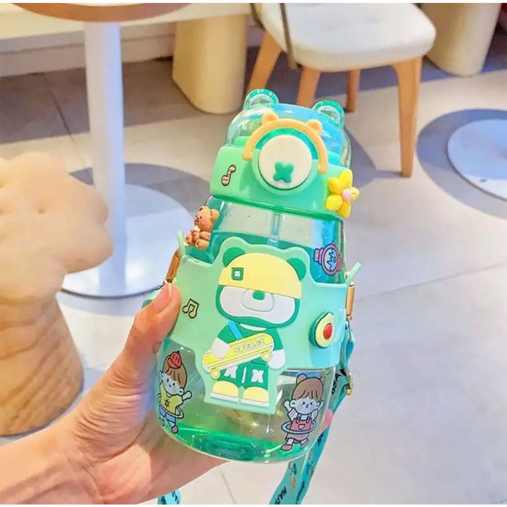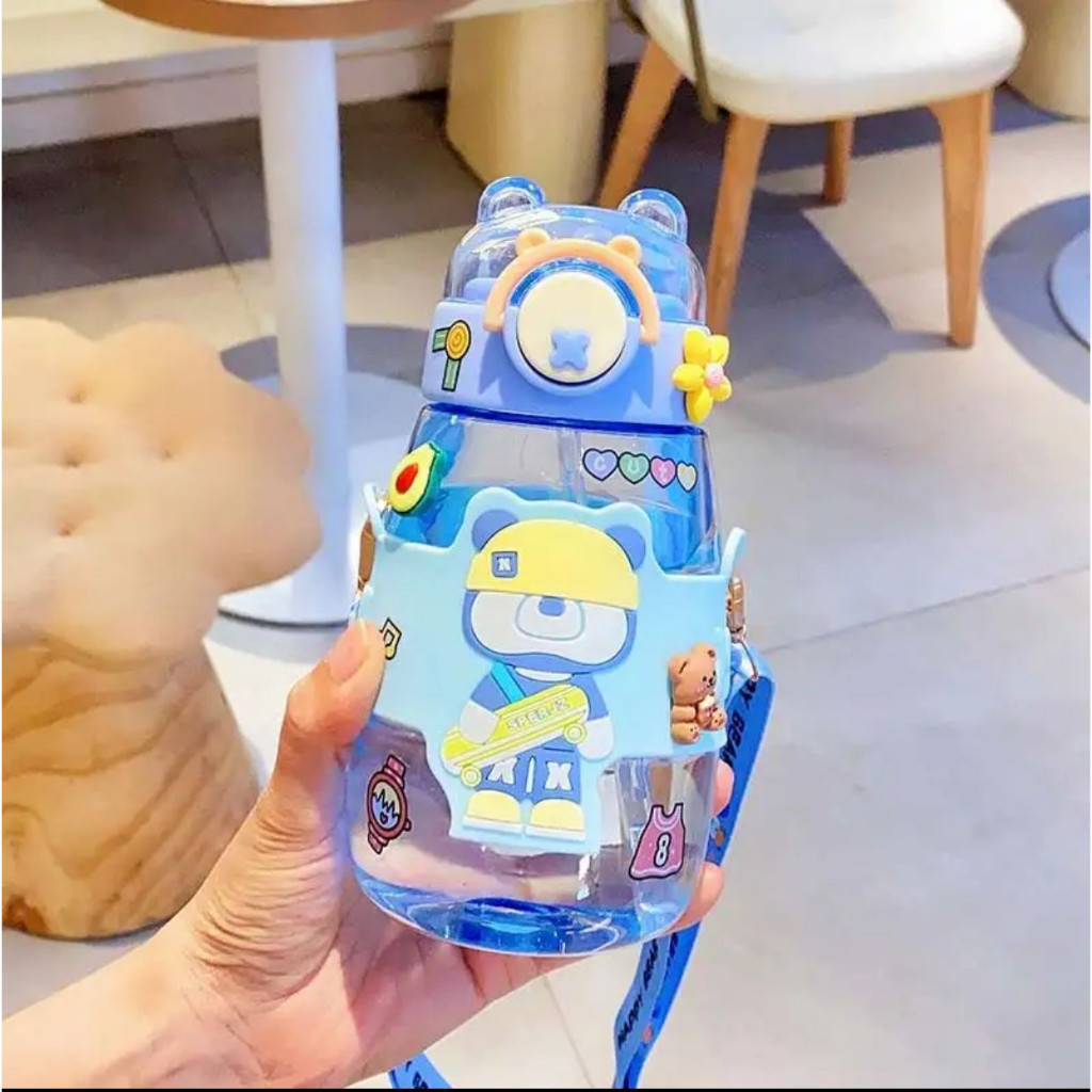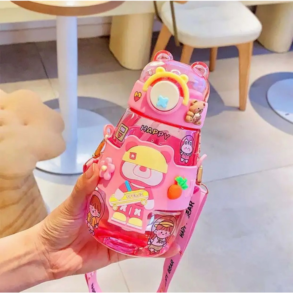 Botol Minum Anak Sekolah SD TK Free Stiker 2D dan 3D Korea Lucu + Tali Panjang dan Sedotan Bpa Free