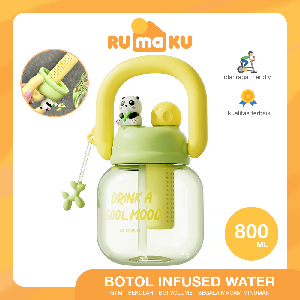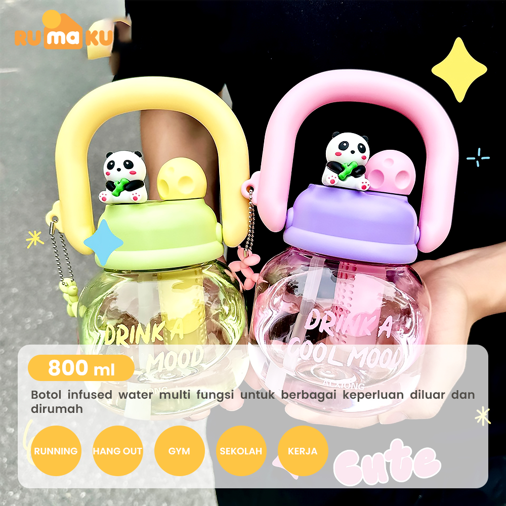 Rumaku Botol Air Minum 2 Sisi Anak Bulat Gemoy Lucu Motif Panda Tritan Dua Cara Minum Linlin Aesthetic 800 ML