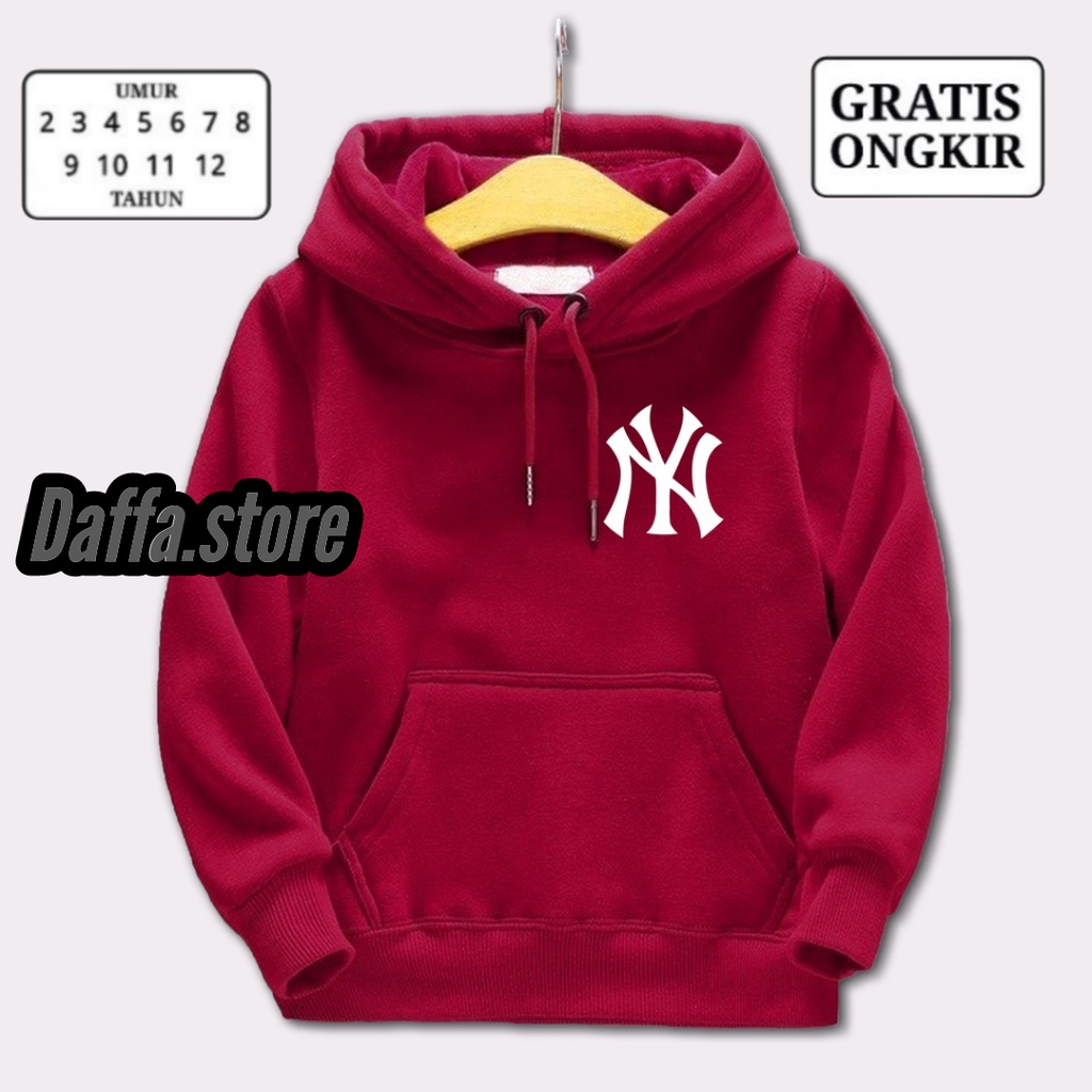 NY SWEATER ANAK HOODIE USIA 2 SAMPAI 12 TAHUN // SWEATER HOODIE NY LOGO SABLON