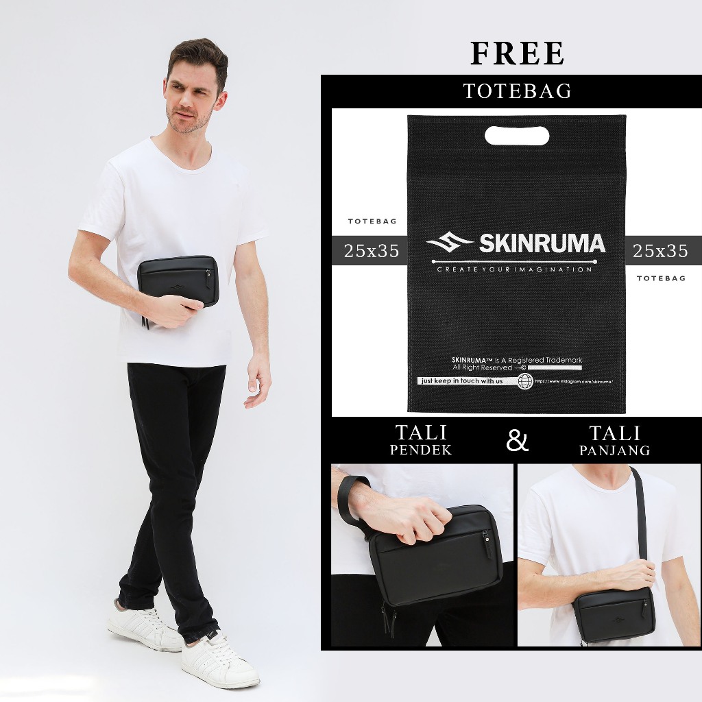 SKINRUMA HANDBAG HUBNER AND JUSTINE EXCLUSIVE BLACK WATERPROOF / TAS PRIA MULTIFUNGSI ANTI AIR / CLUTCH BAG
