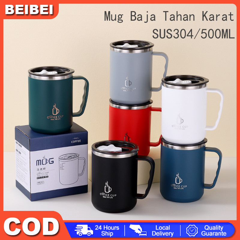 500ML Mug Portable Anti Tumpah Kopi Atau Teh Stainless Steel 304 Aesthetic