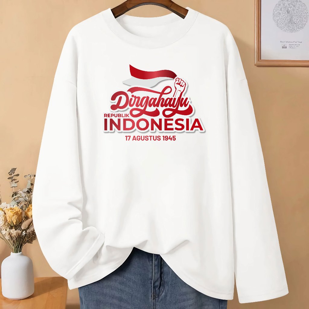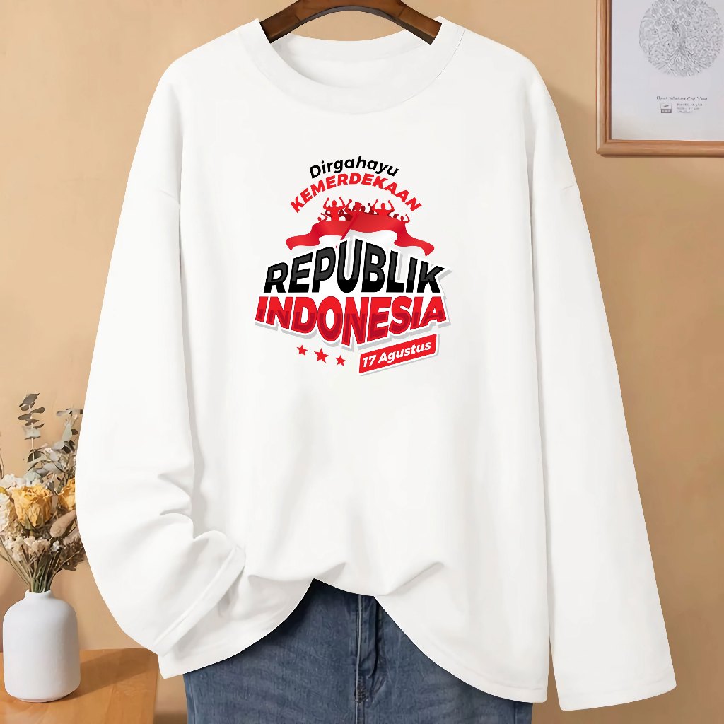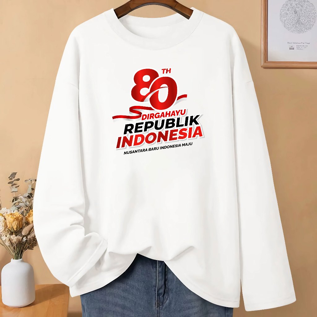 LN Baju Kaos Pria Wanita Dewasa 17 Agustusan HUT RI 80 Kemerdekaan Dirgahayu Republik Indonesia Kaos Merah Putih Lengan Panjang