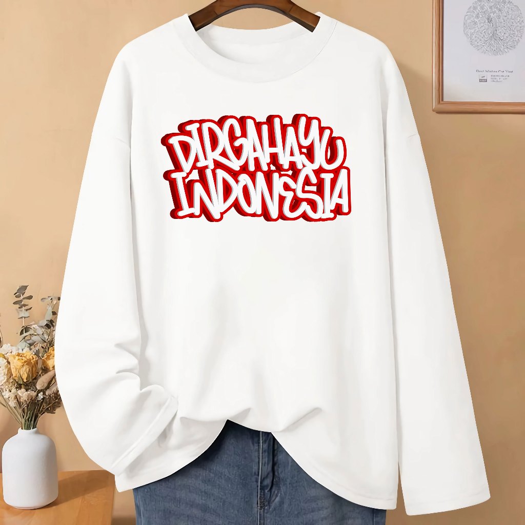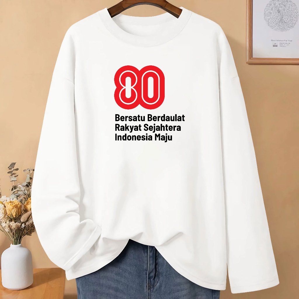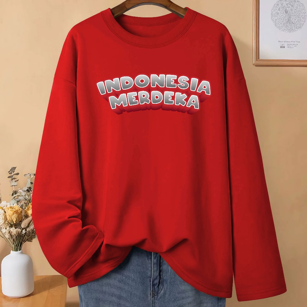 LN Baju Kaos Pria Wanita Dewasa 17 Agustusan HUT RI 80 Kemerdekaan Dirgahayu Republik Indonesia Kaos Merah Putih Lengan Panjang