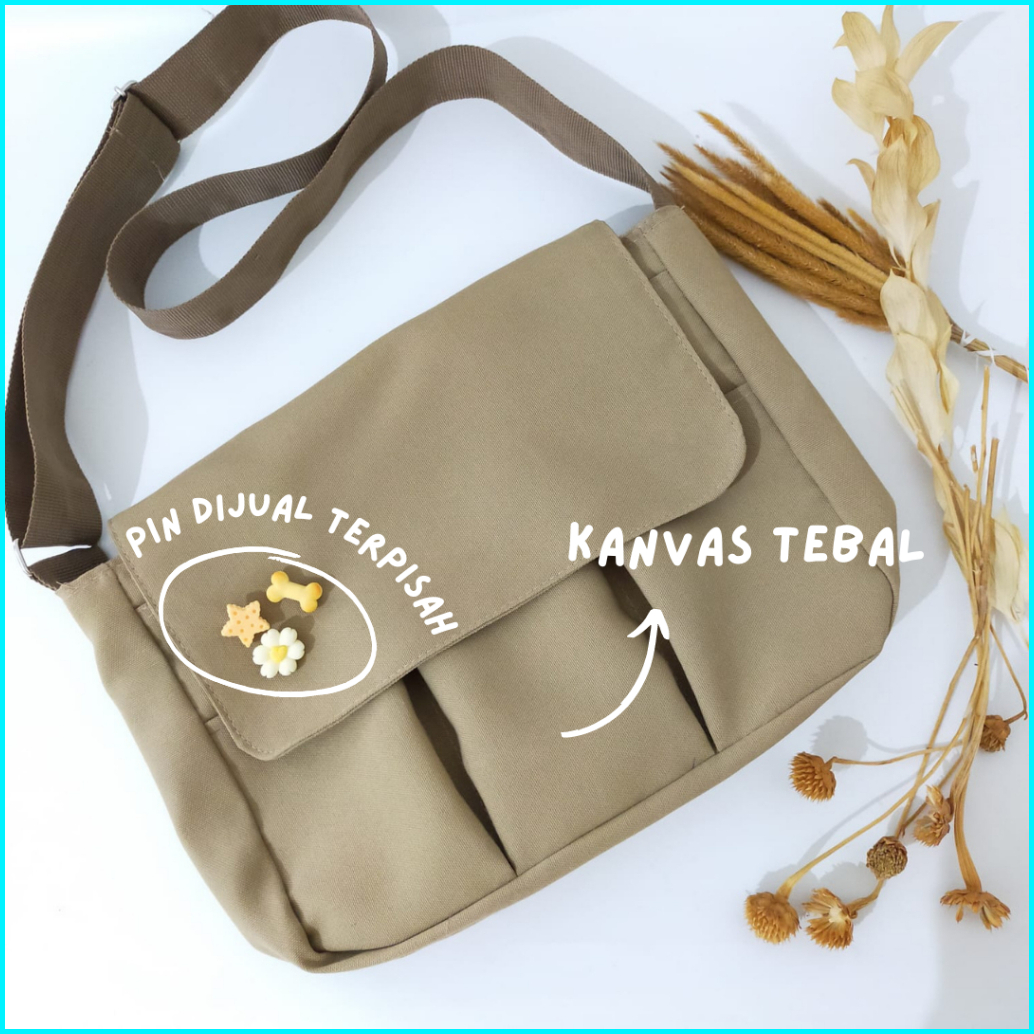 Tas Sling Bag Canvas Murah Shoulder Bag Canvas 3 Pocket