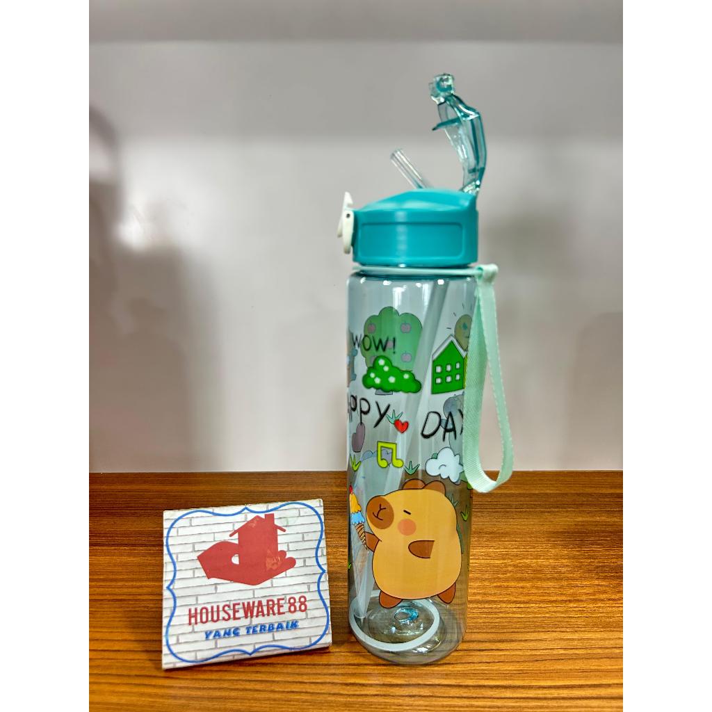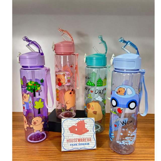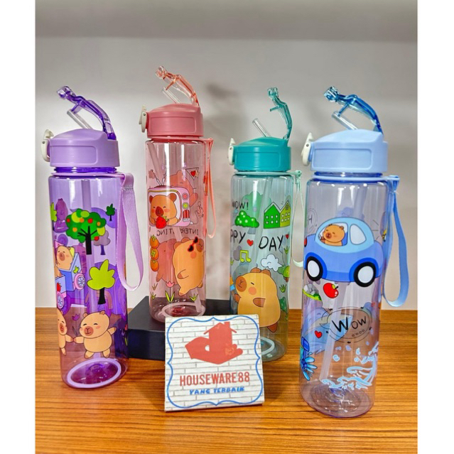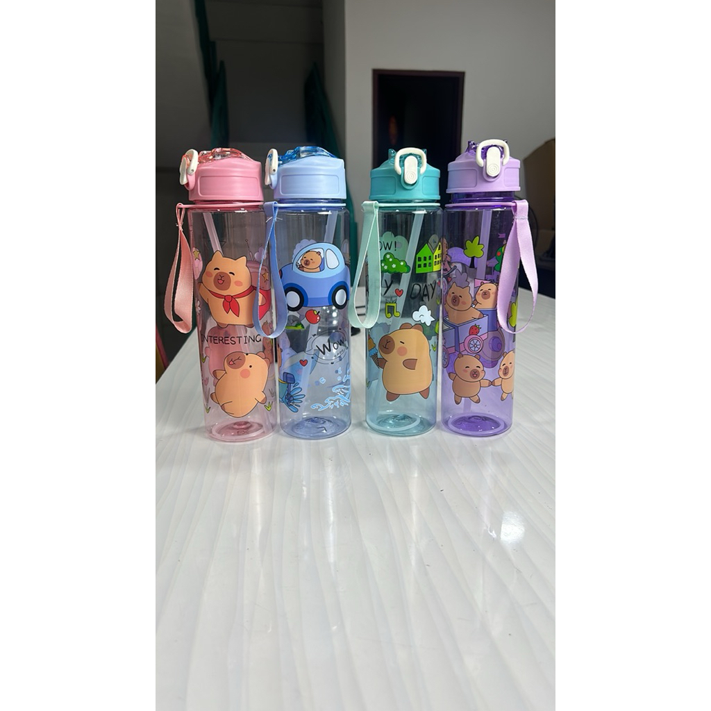 BOTOL MINUM CAPYBARRA BOTOL CAPYBARA VIRAL / BOTOL VIRAL / Botol Viral Bening Botol Transparan Kapasitas 900ml Tali Pend