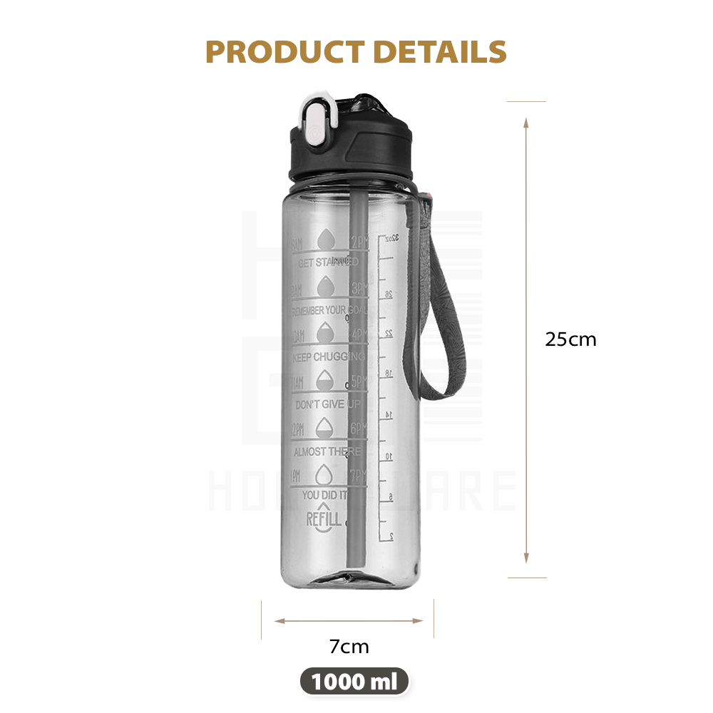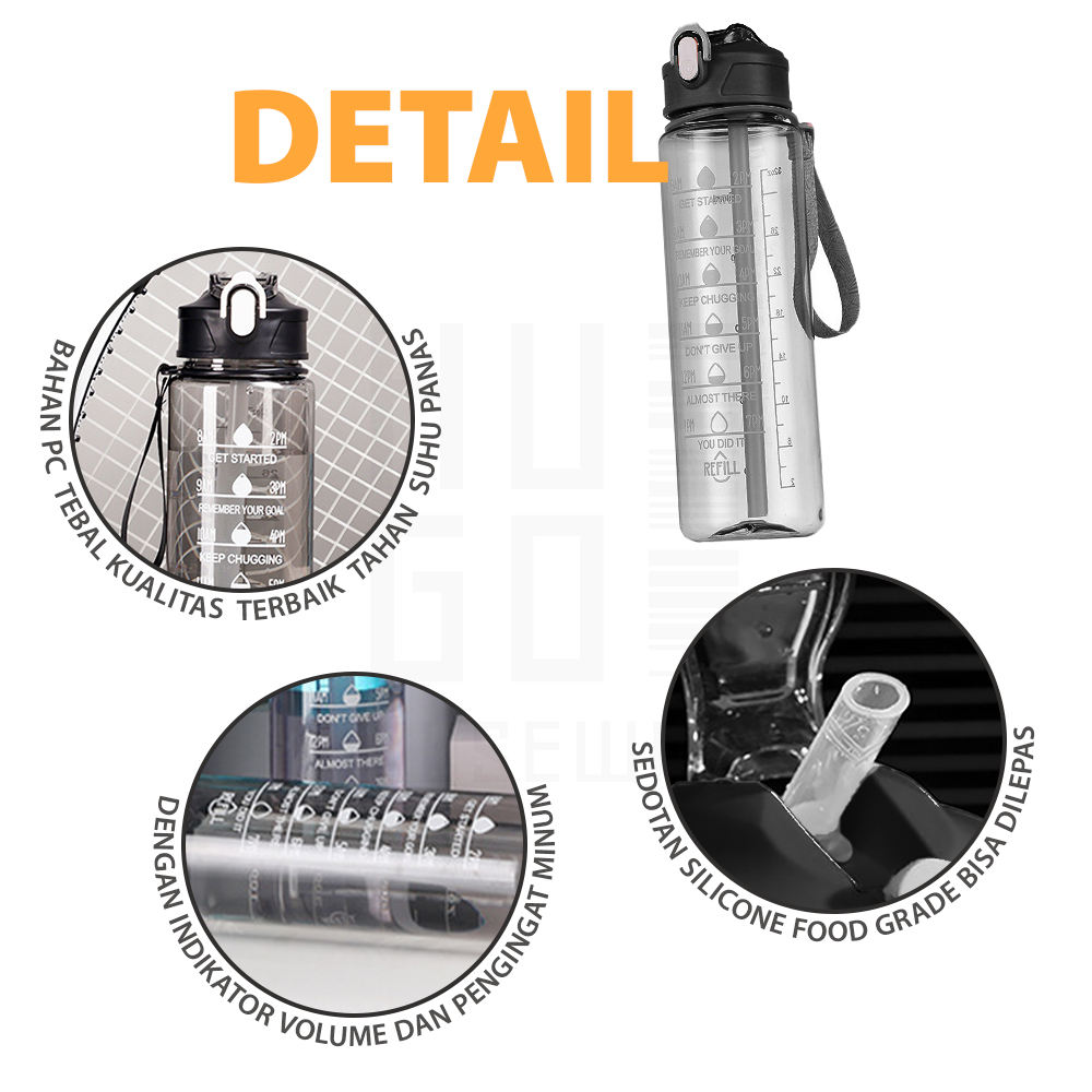 Botol Minum 1 Liter Bening Botol Air Anak Sedotan Anti Bocor Premium BPA FREE HUGO