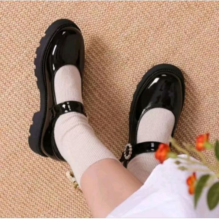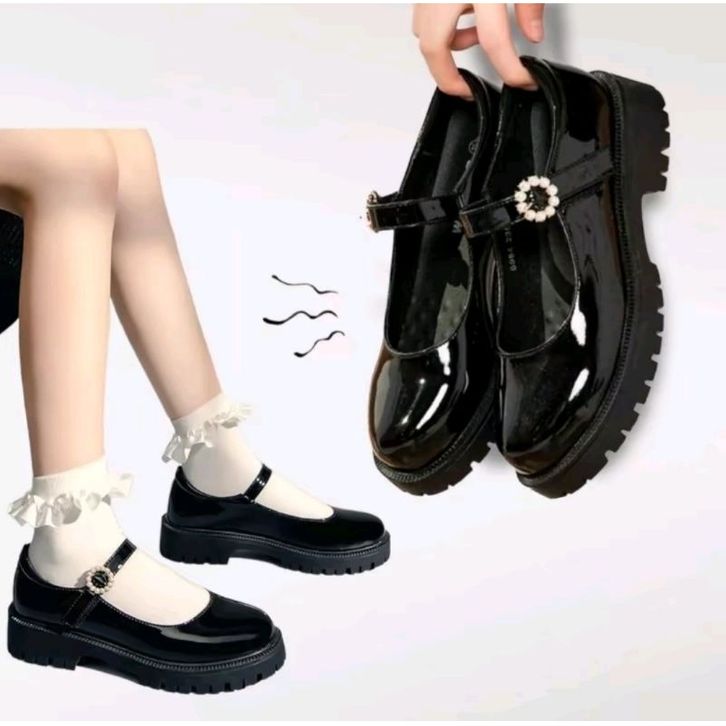 Sepatu Docmart Hitam Sekolah Remaja Perempuan Hak Datar Import Premium Gesper 09 Terbaru Fashion Korea Flatshoes Natasa