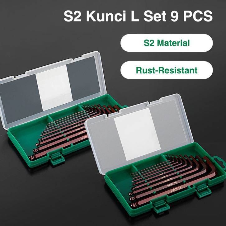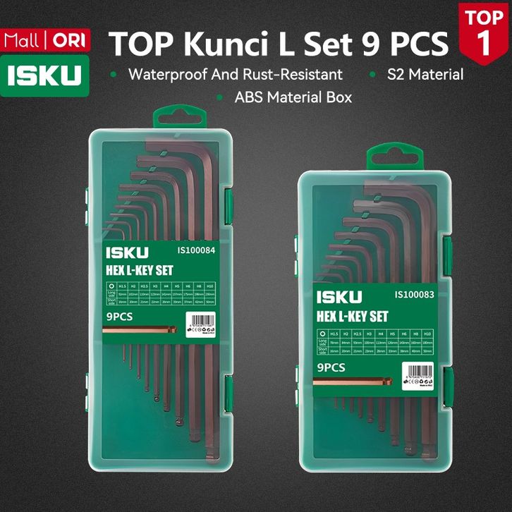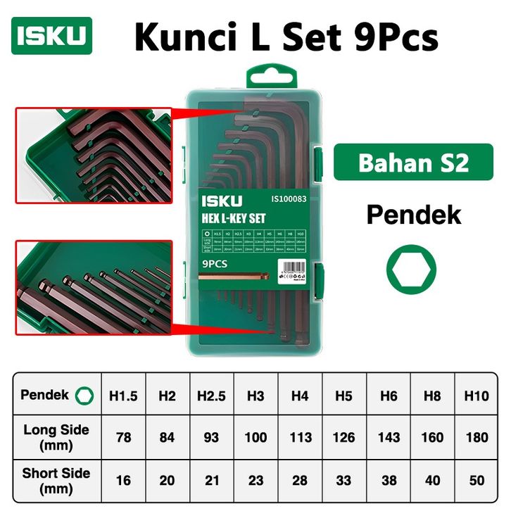 ISKU Kunci L Set panjang Hex Key 9pcs S2 Ball Point Hexagon L Key Bagus Wrench