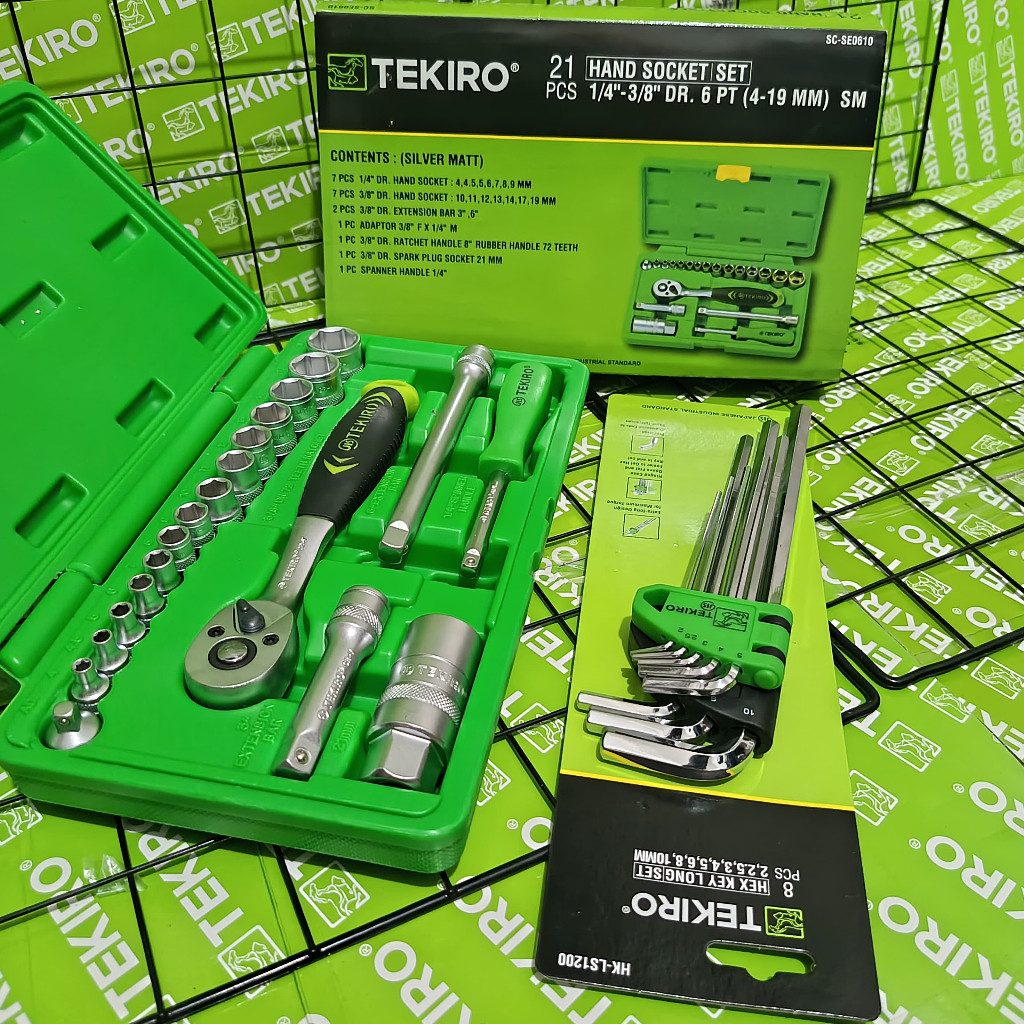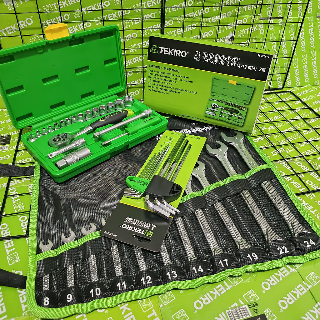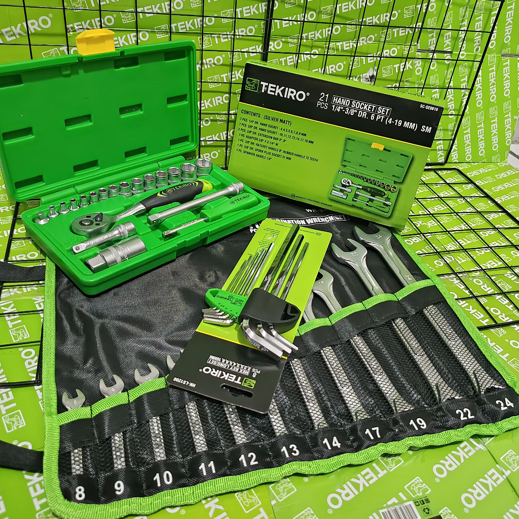 TEKIRO Paket Tools Set 3 Pcs / Kunci Sock Sok 21 Pcs / Ring Pas 11 Pcs / Kunci L 9 Pcs / Alat Bengkel Tekiro Lengkap