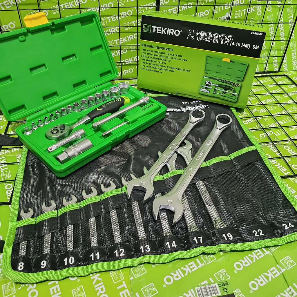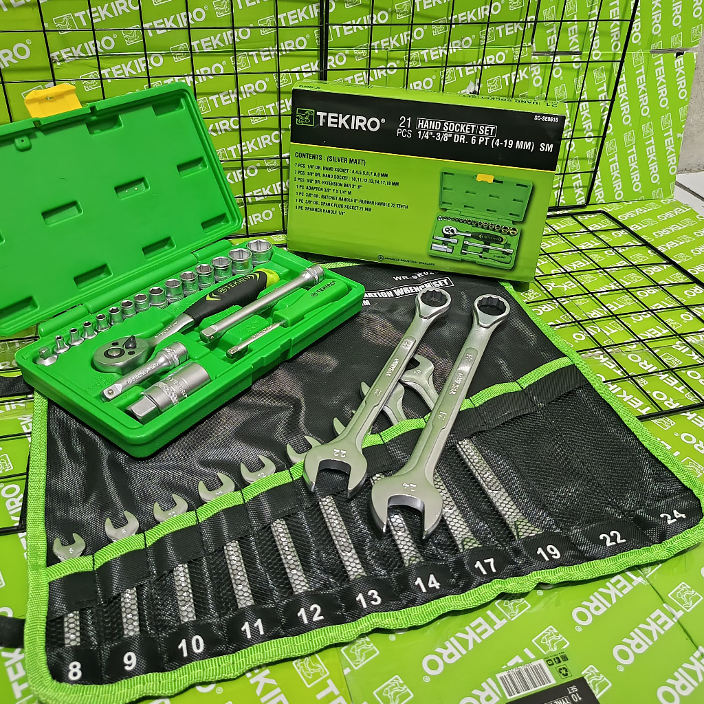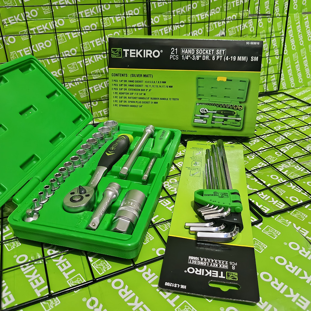 TEKIRO Paket Tools Set 3 Pcs / Kunci Sock Sok 21 Pcs / Ring Pas 11 Pcs / Kunci L 9 Pcs / Alat Bengkel Tekiro Lengkap