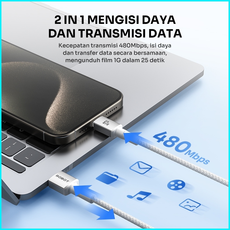 Robot Kabel Data Rsqc100 Fast Charging Usb To Type C 67w Data Cable Original - Garansi 1 Tahun