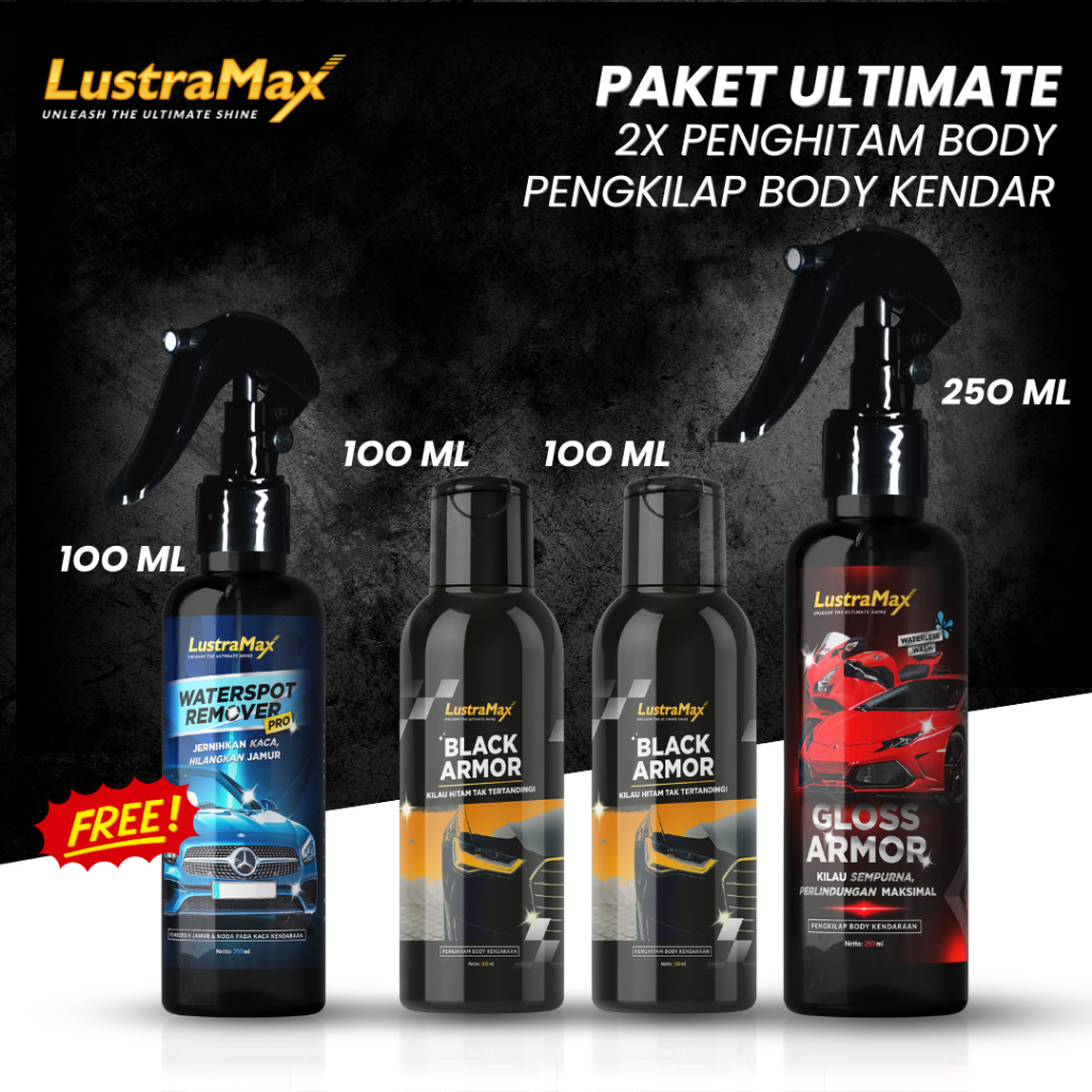LustraMax Paket Ultimate Penghitam Plastik Trim Motor Mobil Pengkilap Coating Perawatan Kendaraan