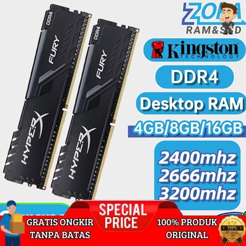 [Mall] RAM Kingston HyperX FURY NEW DDR4 16GB 8GB 4GB 3200MHz 2666MHz 2400MHz PC4-25600 Desktop RAM Memory 288pin 1.2V