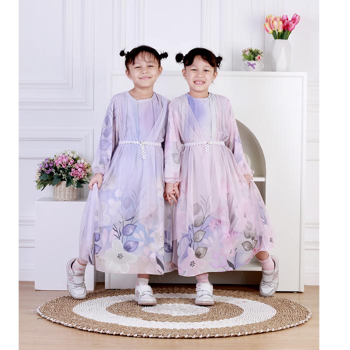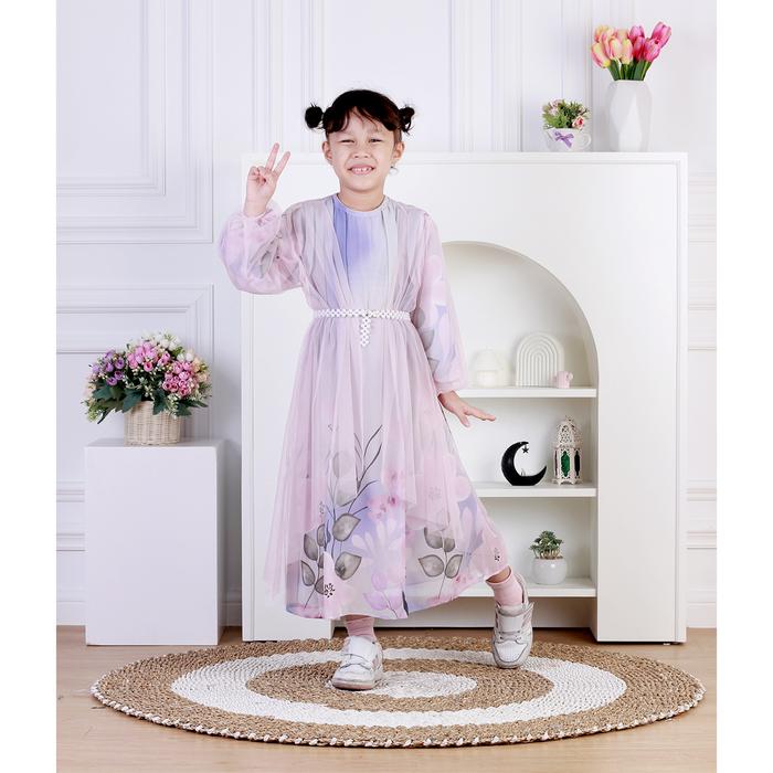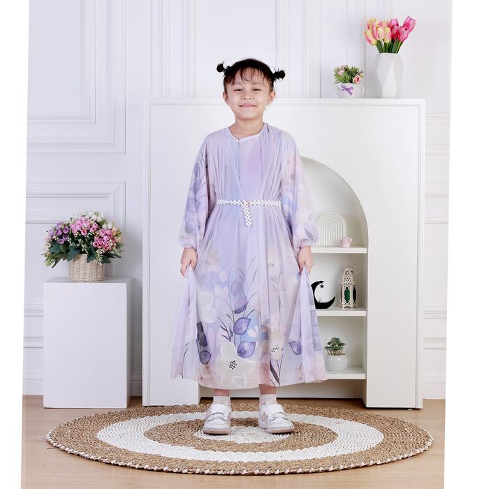 Dungdungkids Gamis Anak Olivia Ceruty Babydoll Outer Tile Free Belt 3 - 12 Tahun - Sage, S (3 - 4 Tahun)