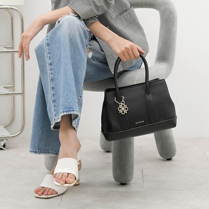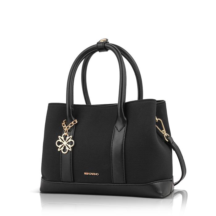 Tas Wanita Les Catino Jasper Satchel + Free Rex Pom Pom Cream - Black/Black