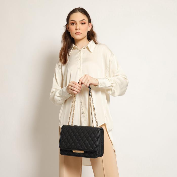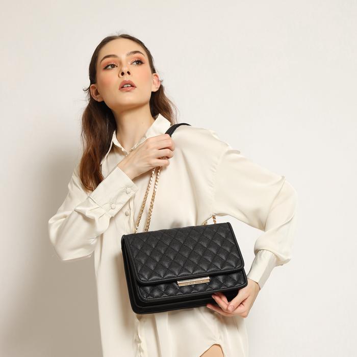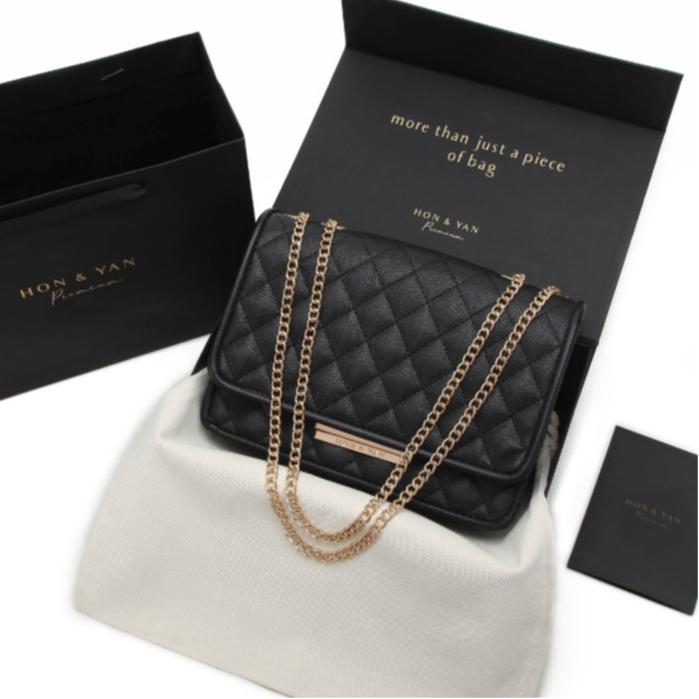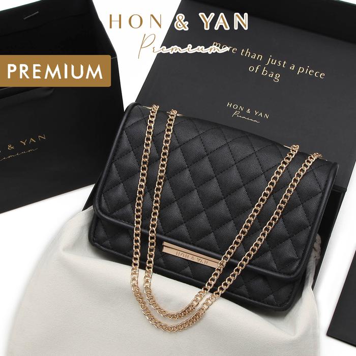 HONYAN Premium Tas Selempang Wanita Kulit Honey Mewah - Louis Quilted Chain - Black