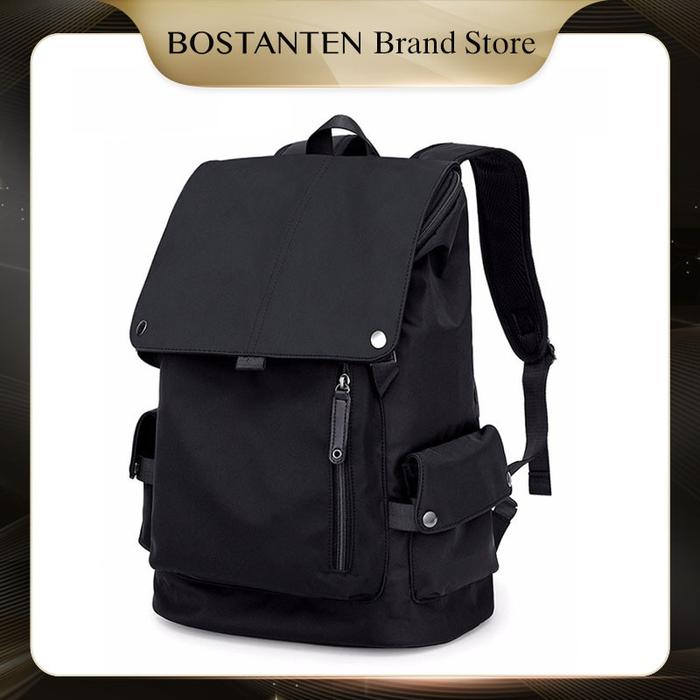 BOSTANTEN Tas Ransel Pria Nilon Tas Rekreasi Tas Mahasiswa Berkapasitas Besar - Hitam
