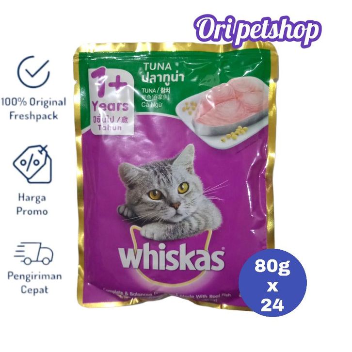 24 pouch Whiskas Sachet Pouch 80g Wet Cat Wood - 1+ Tuna