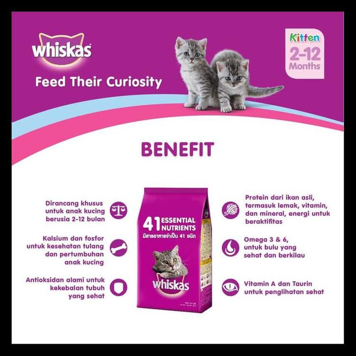 Cat_Dog Petfood | Makanan Kucing WHISKAS Junior Kering Rasa Mackarel Kemasan 1.1 Kg Freshpack