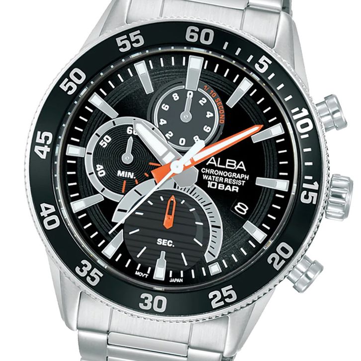Promo Alba Active Jam Tangan Pria Chronograph AM3895 / AM3895X1 Quartz Black Dial Stainless Steel Strap Watch Keren