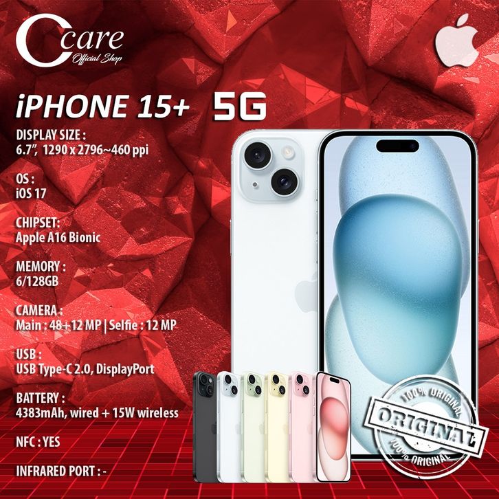 Promo IPhone 15 Plus 128GB Garansi Resmi 5G 6.7 Inci Elegan