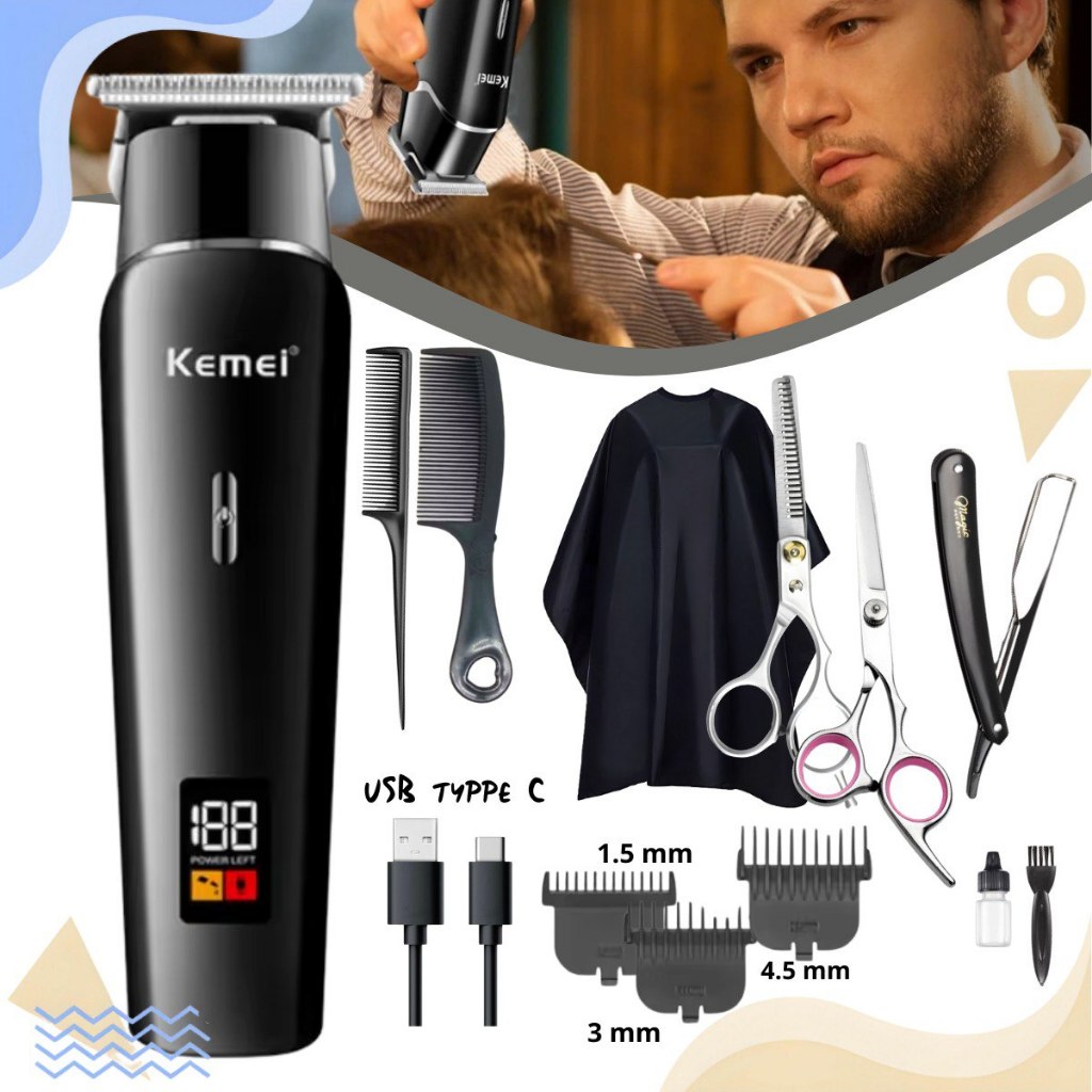 ALAT CUKUR RAMBUT KEMEI PROFESSIONAL HAIR TRIMMER LCD DISPLAY POWER 1200 MAH PORT TYPE-C