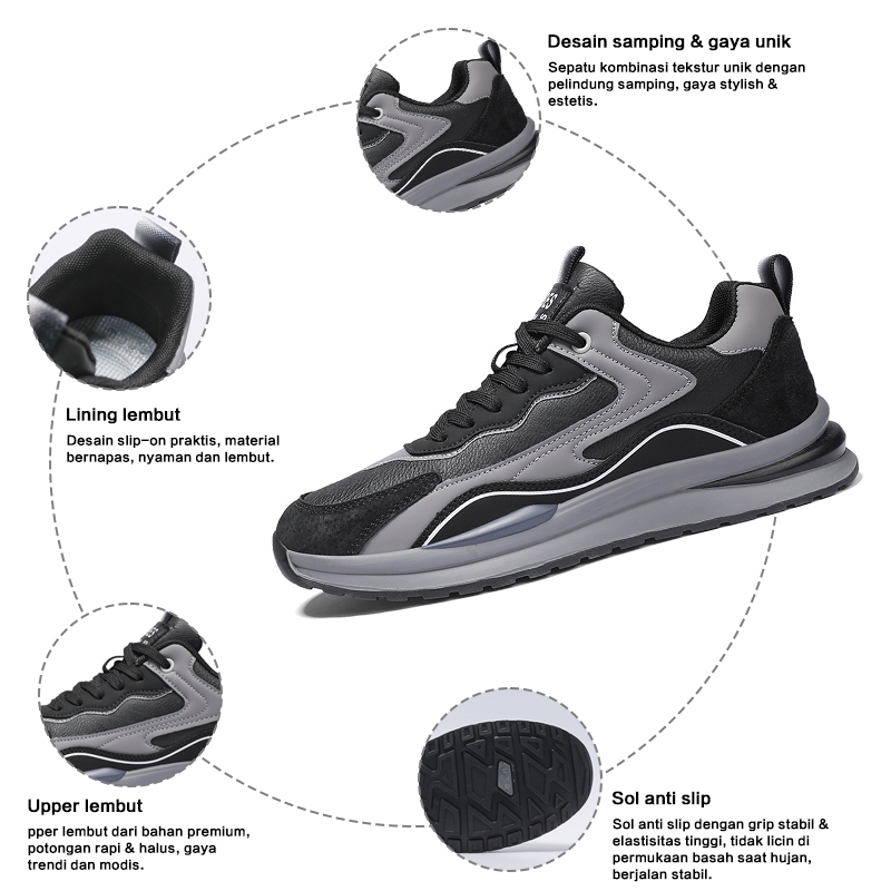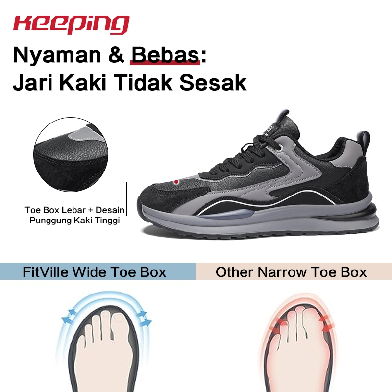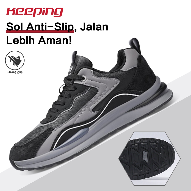 KEEPING SEPATU SNEAKERS PRIA ORIGINAL SPATU OLAHRAGA COWOK KULIAH SEPATU SPORT RUNNING HITAM CASUAL JALAN KSR708