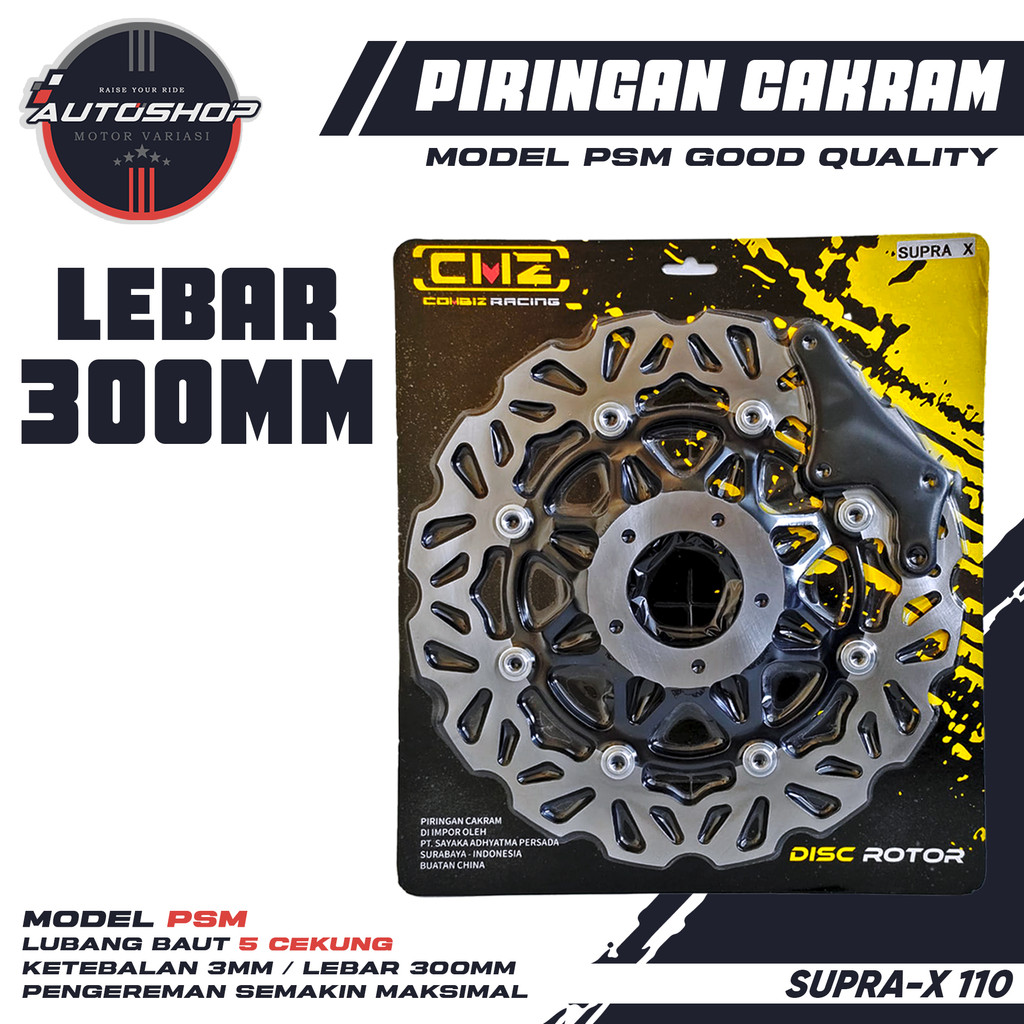 PIRINGAN CAKRAM DEPAN SUPRA X 110 – 300MM PSM 5 LUBANG CEKUNG HITAM | BONUS BRACKET KALIPER