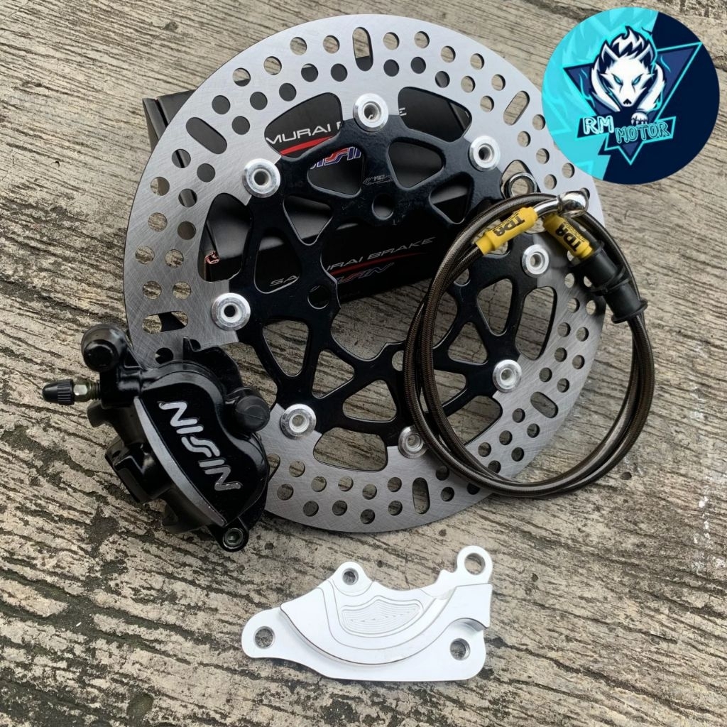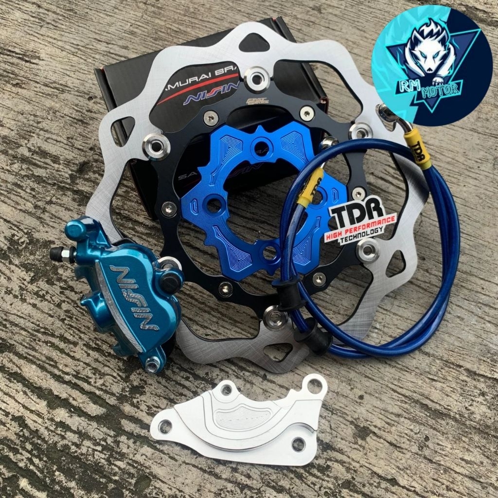 PAKET PIRINGAN DISC CAKRAM 260MM + KALIPER 2PISTON NI5ZIN /BR3M80 + SELANG REM TDR 35 INCHI + BREKET 260MM MIO SMILE MIO KARBU XEON DLL