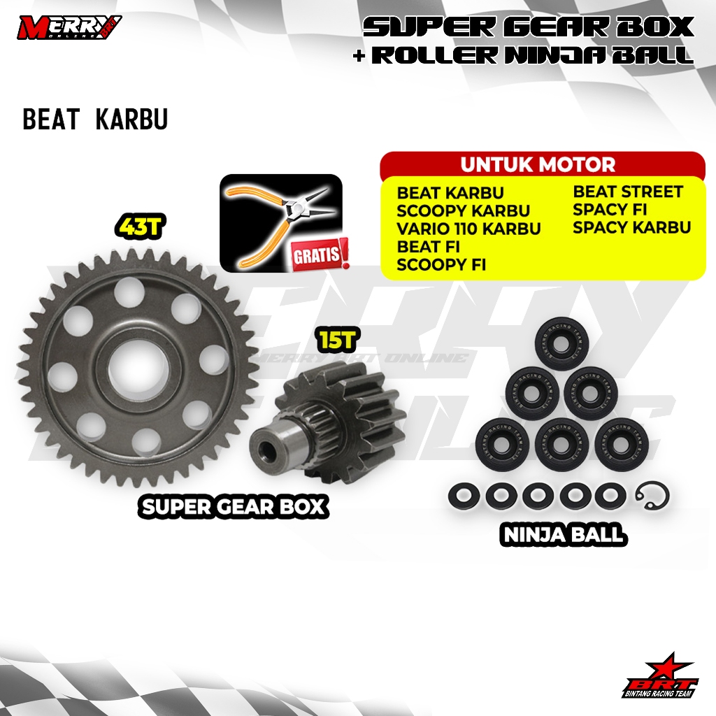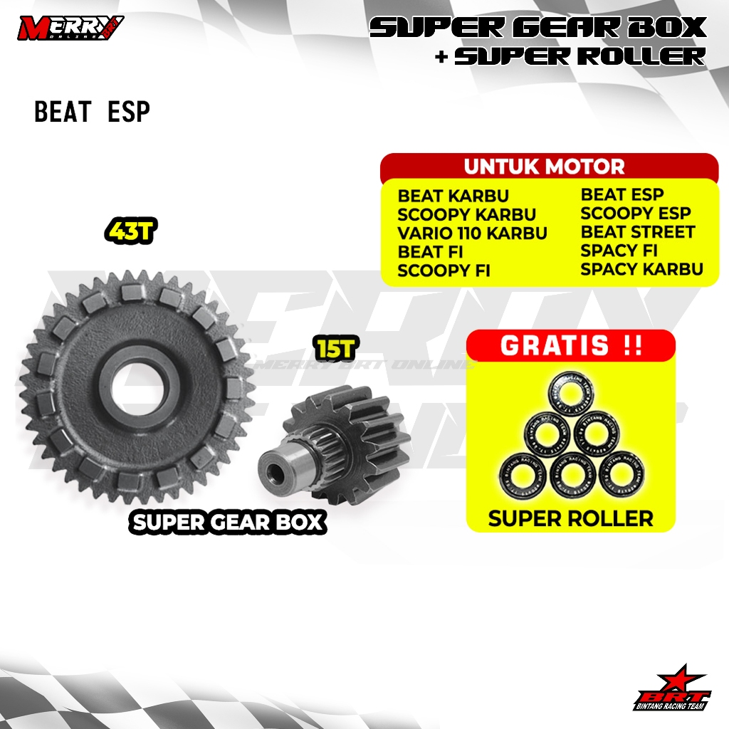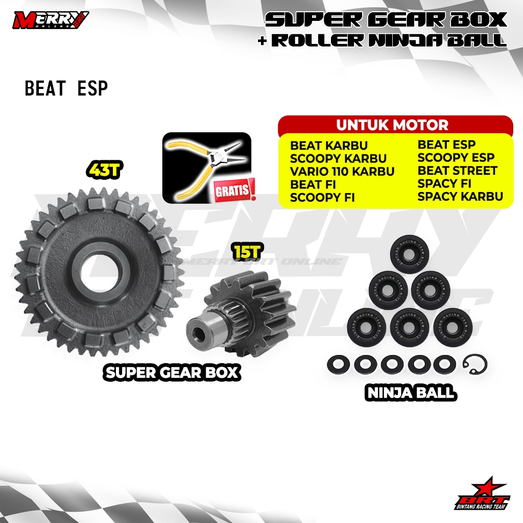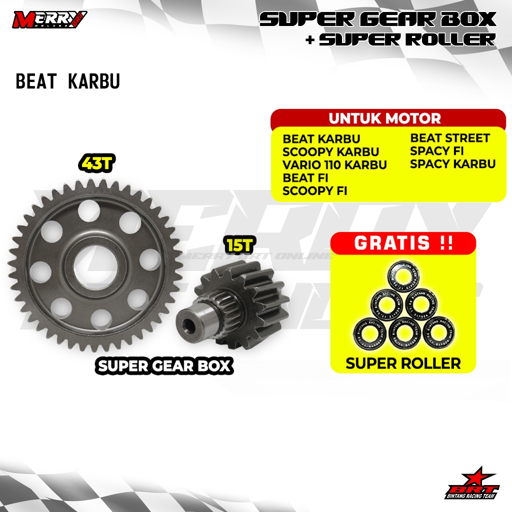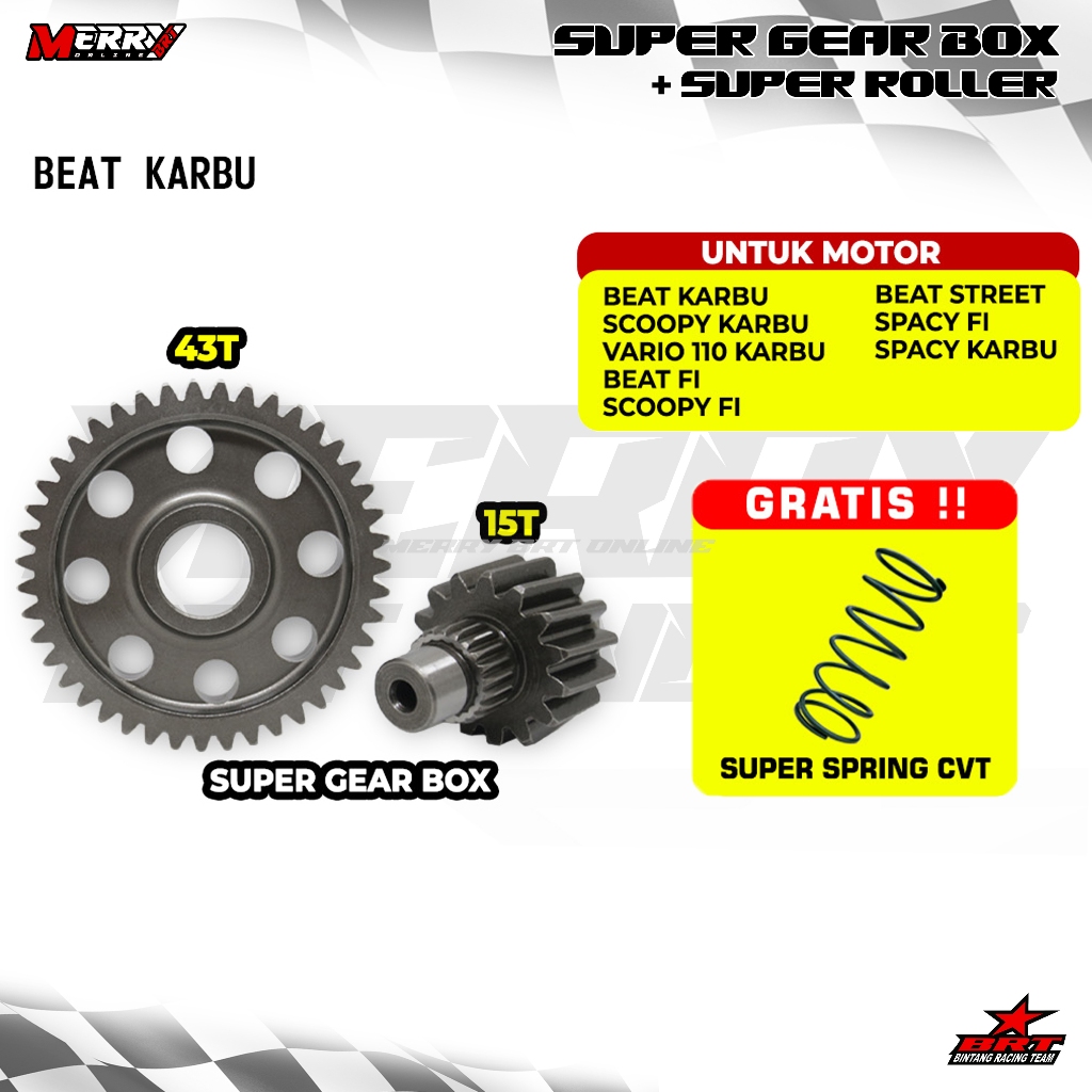 SUPER GEAR BOX BRT 15T/43T BEAT KARBU / BEAT FI / VARIO 110 / BEAT STREET ESP K44