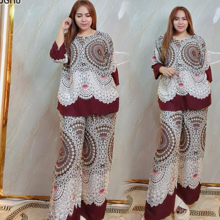 Naila Set Vol.2 Setelan Wanita Busui Bahan Rayon Adem Baju Dewasa Kulot Motif - Nila Set A, Allsize