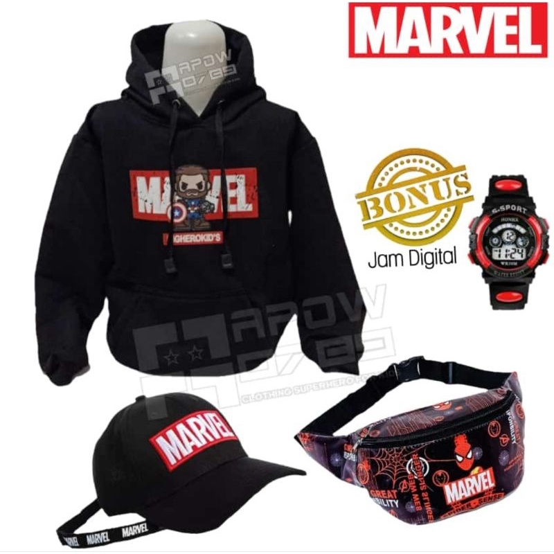 PDF PAKET 4IN1 SWEATER HOODIE ANAK LAKI LAKI USIA 3-9 TAHUN BONUS JAM DIGITAL TAS SELEMPANG TOPI ANAK