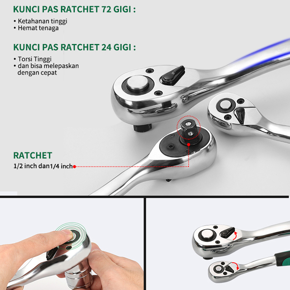 ISKU Tools Set 121pcs/37pcs 72gigi kunci shock set lengkap Kombinasi Termasuk 1 set kunci pas ratchet 1/2 1/4 3/8 kunci pas ratchet Dan Kunci Socket Set Kunci mata Sok Set Kunci Ring Pas Set