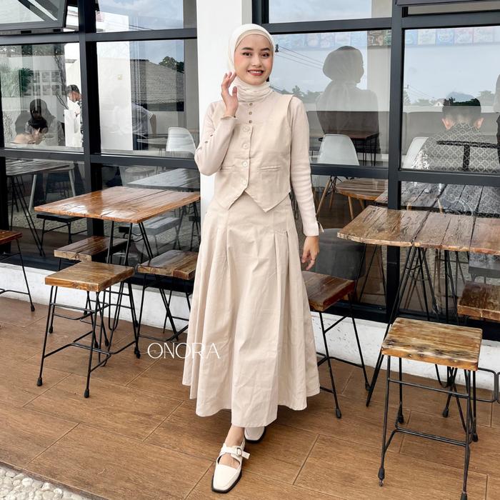 Onora - Setelan Wanita Vest & Rok Zella Katun Twill - Zella Black, Standar