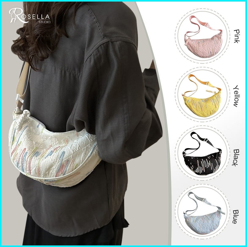 Rosellastudio Tas Selempang Bahu Tunggal Kasual Cute Sling Bag Korea Lucu Wanita Dumpling Bag Kanvas