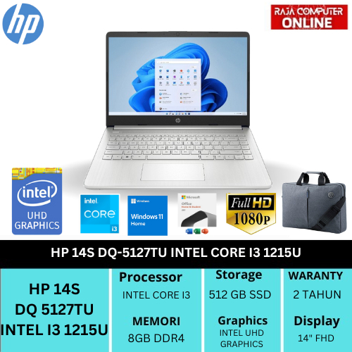 LAPTOP HP 14S INTEL i3 1215U RAM 8GB 512GB SSD WIN11 OHS 14" FHD BACKLIT 2YEAR DQ5568tu/DQ5567TU